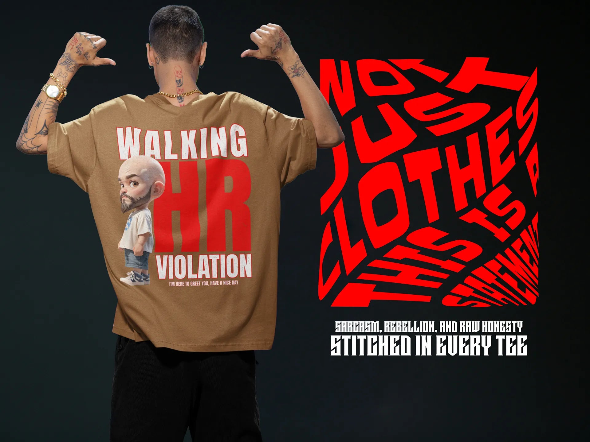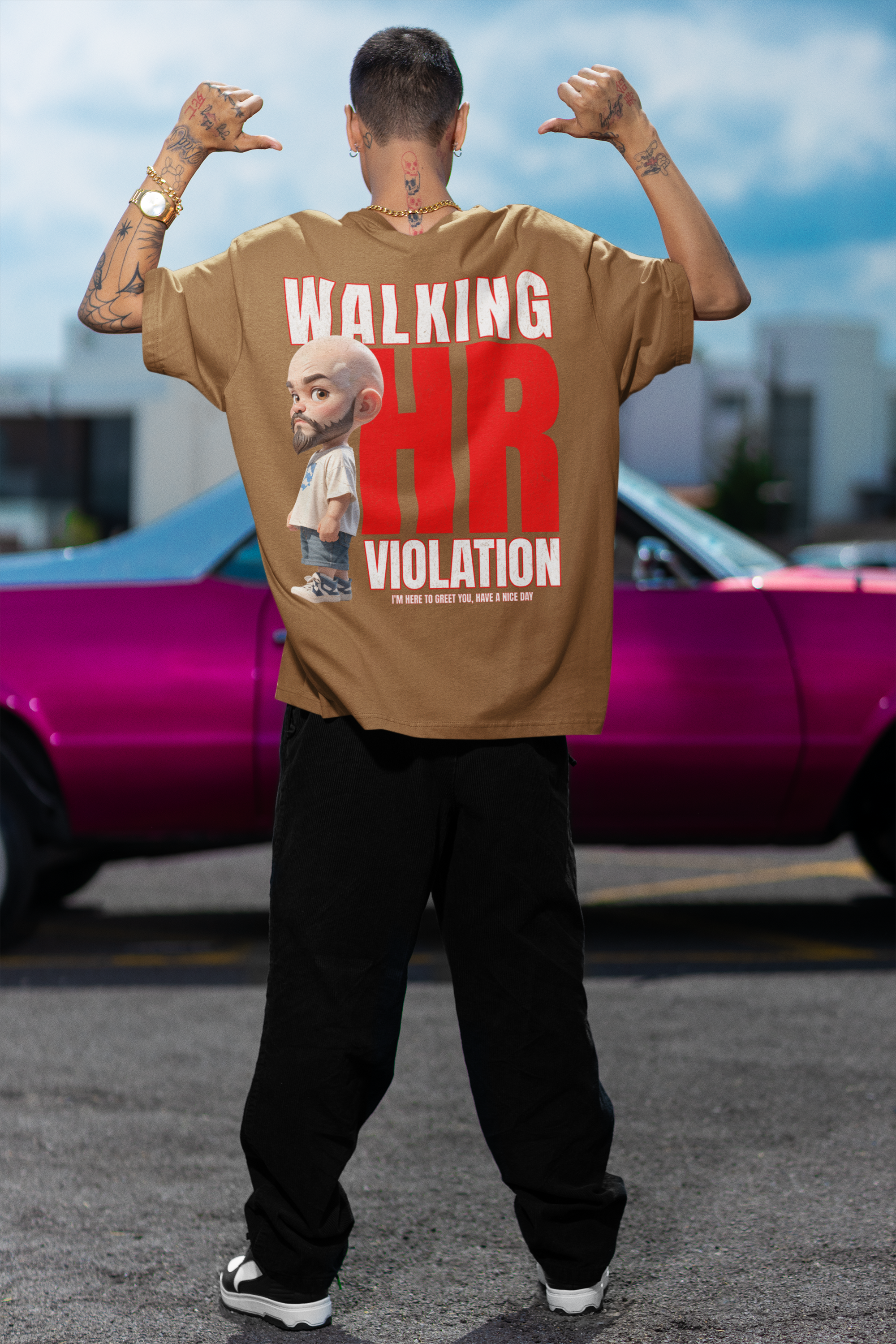 Walking HR Violation Oversized Tee – Bold Corporate Humor Graphic Shirt