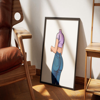 Baked Art - Jeans Denim Model 78. This design showcases a figure in high-waisted, snug-fitting denim jeans with a clean, sleek appearance. Baked Art - Jeans Denim Model 78. The character is wearing a cropped purple top with short sleeves and a high neckline, adding a casual yet fashionable vibe. Baked Art - Jeans Denim Model 78. The detailed shading and highlights enhance the texture of the denim and the folds of the fabric, creating a sense of depth and realism. Baked Art - Jeans Denim Model 78.
