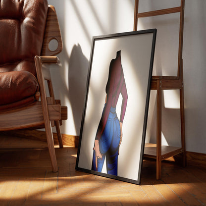 This design, Baked Art - Jeans Denim Model 79, features a figure wearing high-waisted, form-fitting blue denim jeans with an eye-catching bold texture. The top is a long-sleeved, dark maroon or burgundy garment, which contrasts nicely with the jeans, offering a sleek and stylish look. Baked Art - Jeans Denim Model 79 creates an assertive and confident vibe as the figure is posed with one hand placed on the hip. The shading and highlights in Baked Art - Jeans Denim Model 79 effectively bring out the contours and folds, adding depth and a dynamic sense of motion. Known for its style, Baked Art - Jeans Denim Model 79 is crafted with attention to detail, perfect for enhancing any wardrobe. With Baked Art - Jeans Denim Model 79, you get a fusion of boldness and elegance. Finally, Baked Art - Jeans Denim Model 79 stands out as a true statement piece in the world of denim fashion.