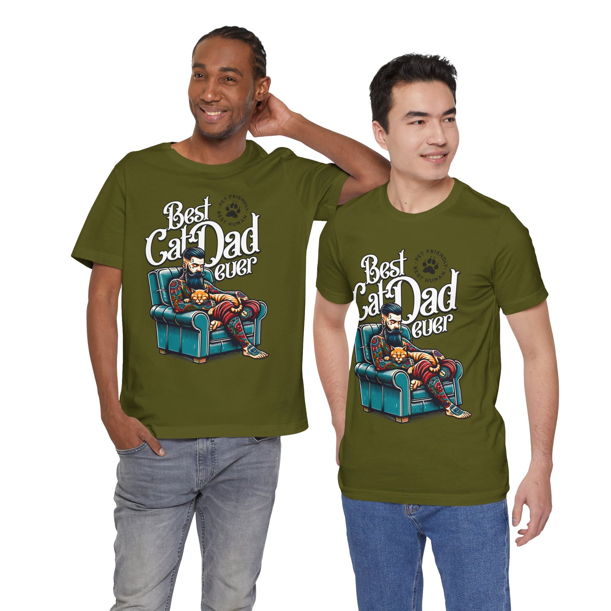 Cats don’t hand out compliments easily — but this shirt does it for them. The Best Cat Dad Ever T-Shirt celebrates your role as a top-tier feline caretaker. Soft, stylish, and packed with pride, it’s a staple for every cat lover’s wardrobe. Wear it on walks, coffee runs, or during those legendary couch cuddles with your furry boss.