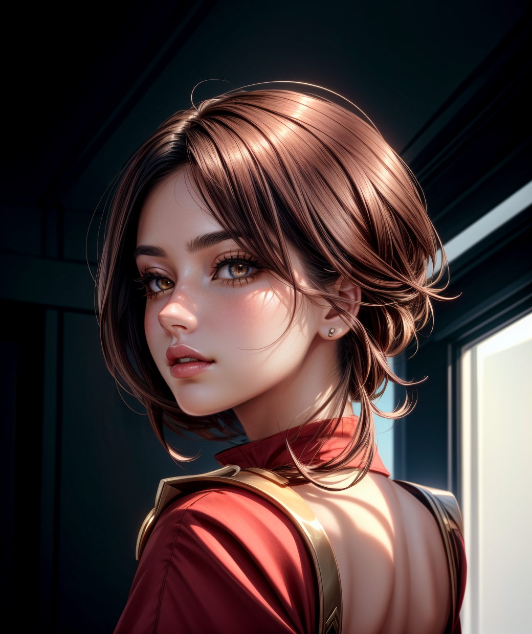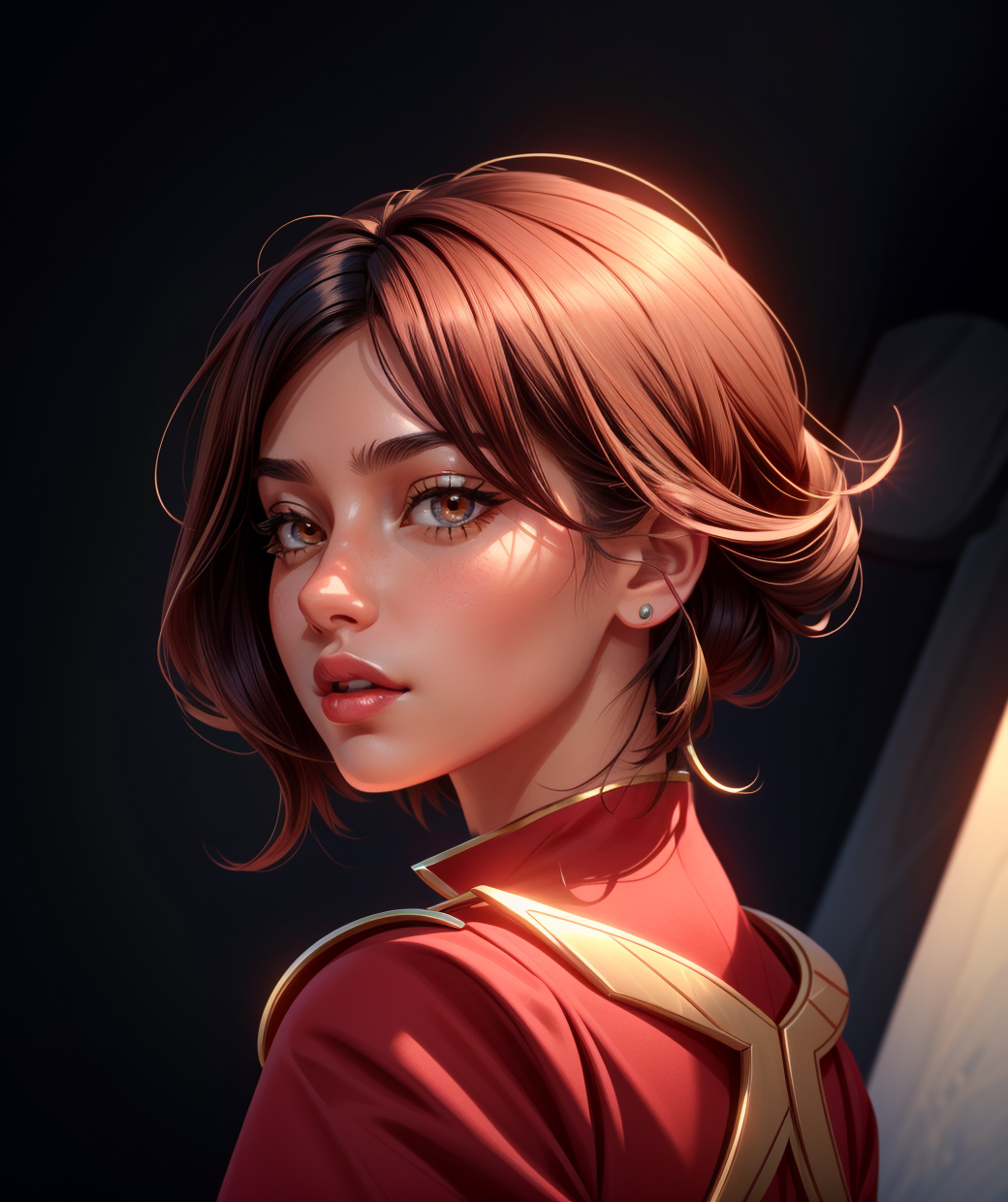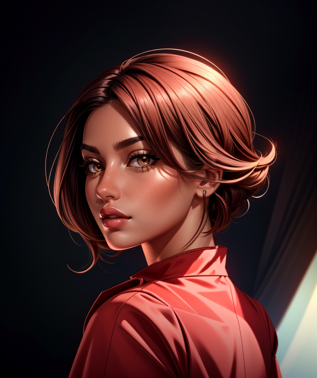 Bold and beautiful, this exquisite portrait captures the essence of elegance with a dash of rebellion. With her rich auburn hair and intense gaze, this AI-generated masterpiece will captivate and inspire all who see it. Own this one-of-a-kind artwork now!
