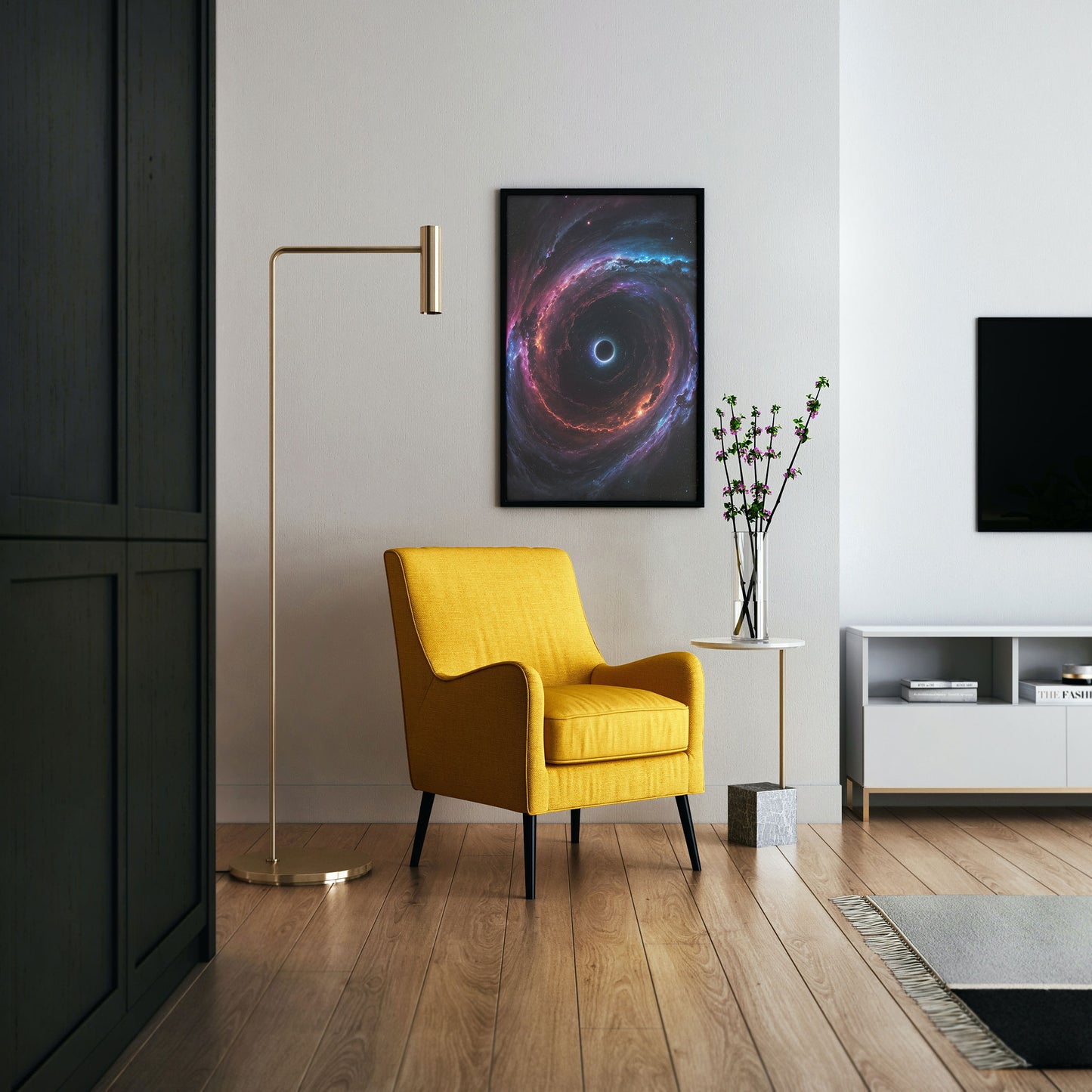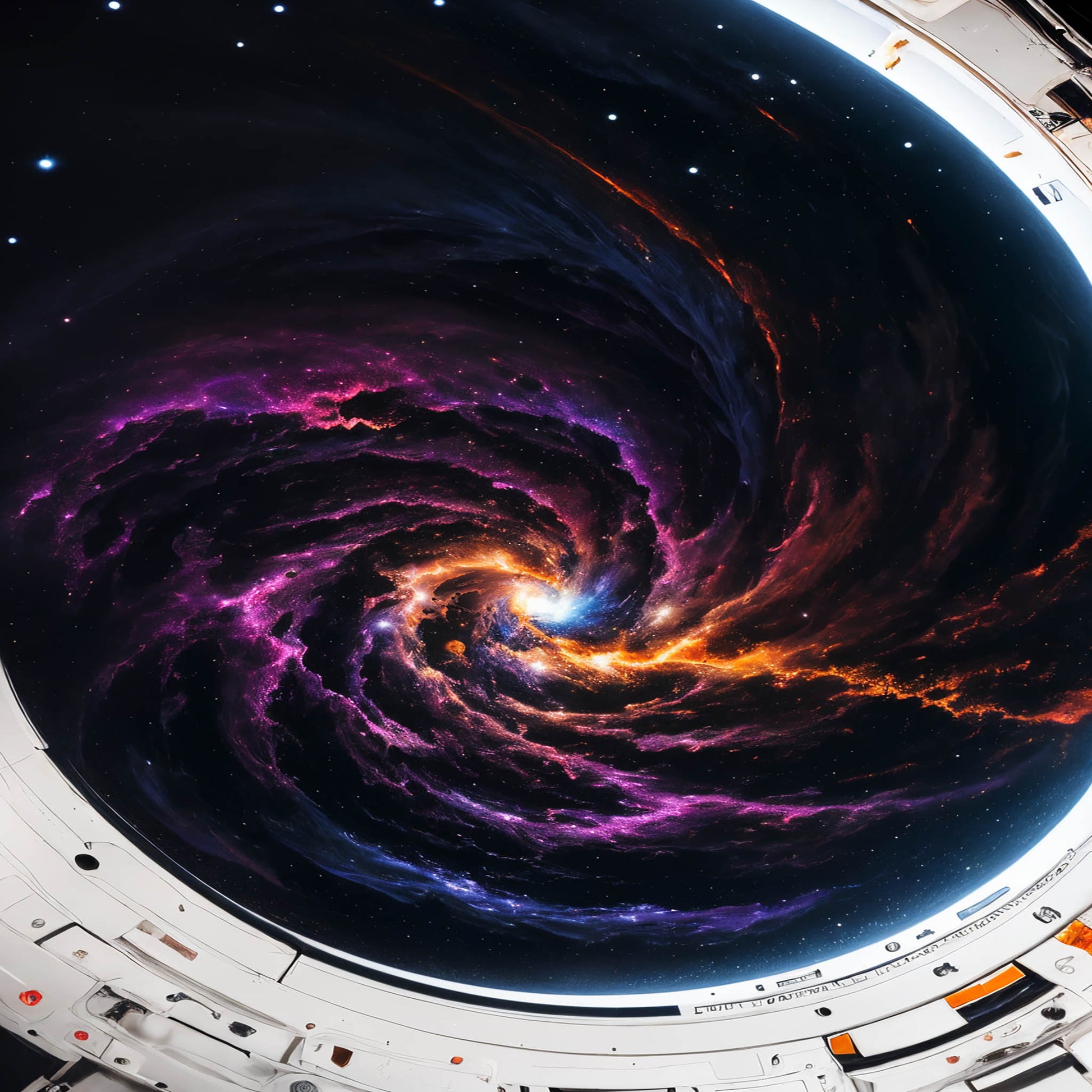 A vibrant wheel of prismatic colors, creating a symphony of stardust and energy that radiates from a singular, dark core.