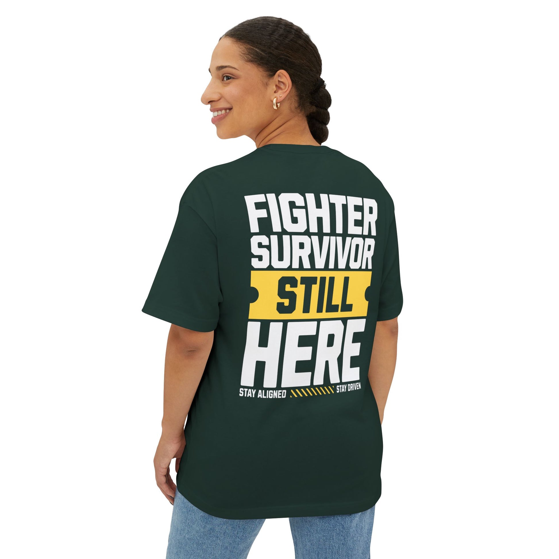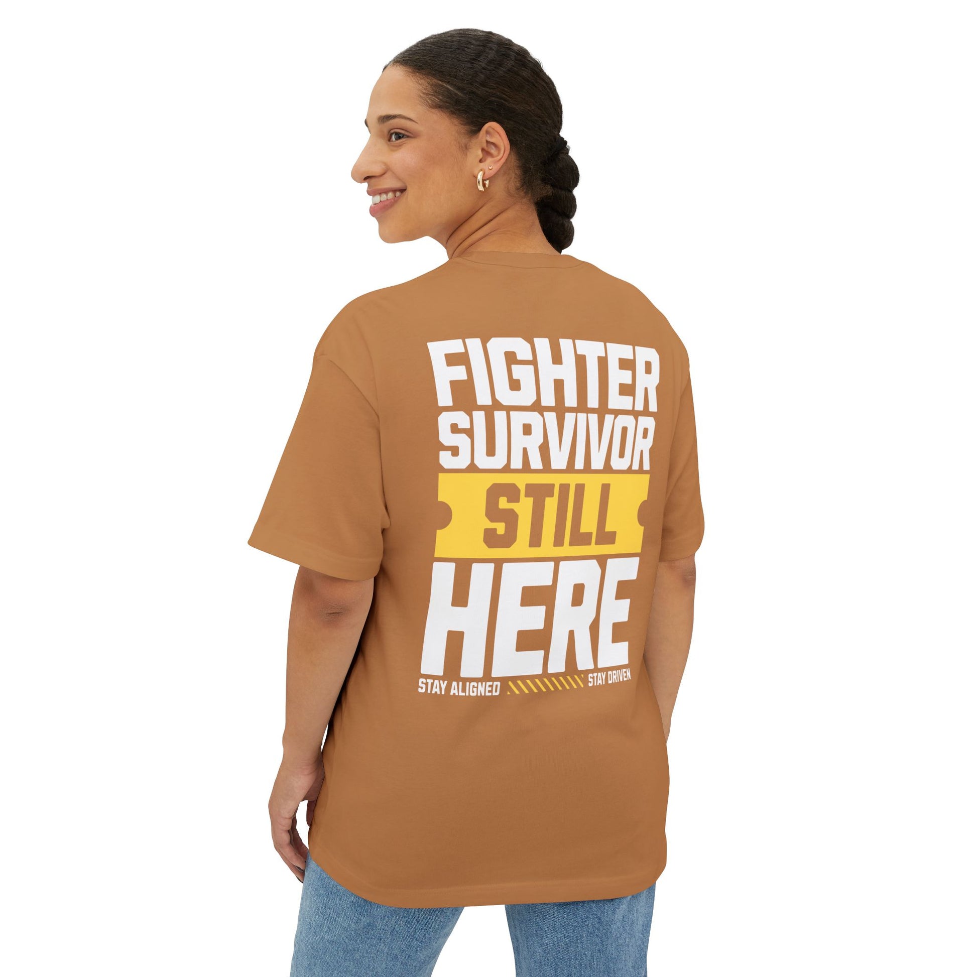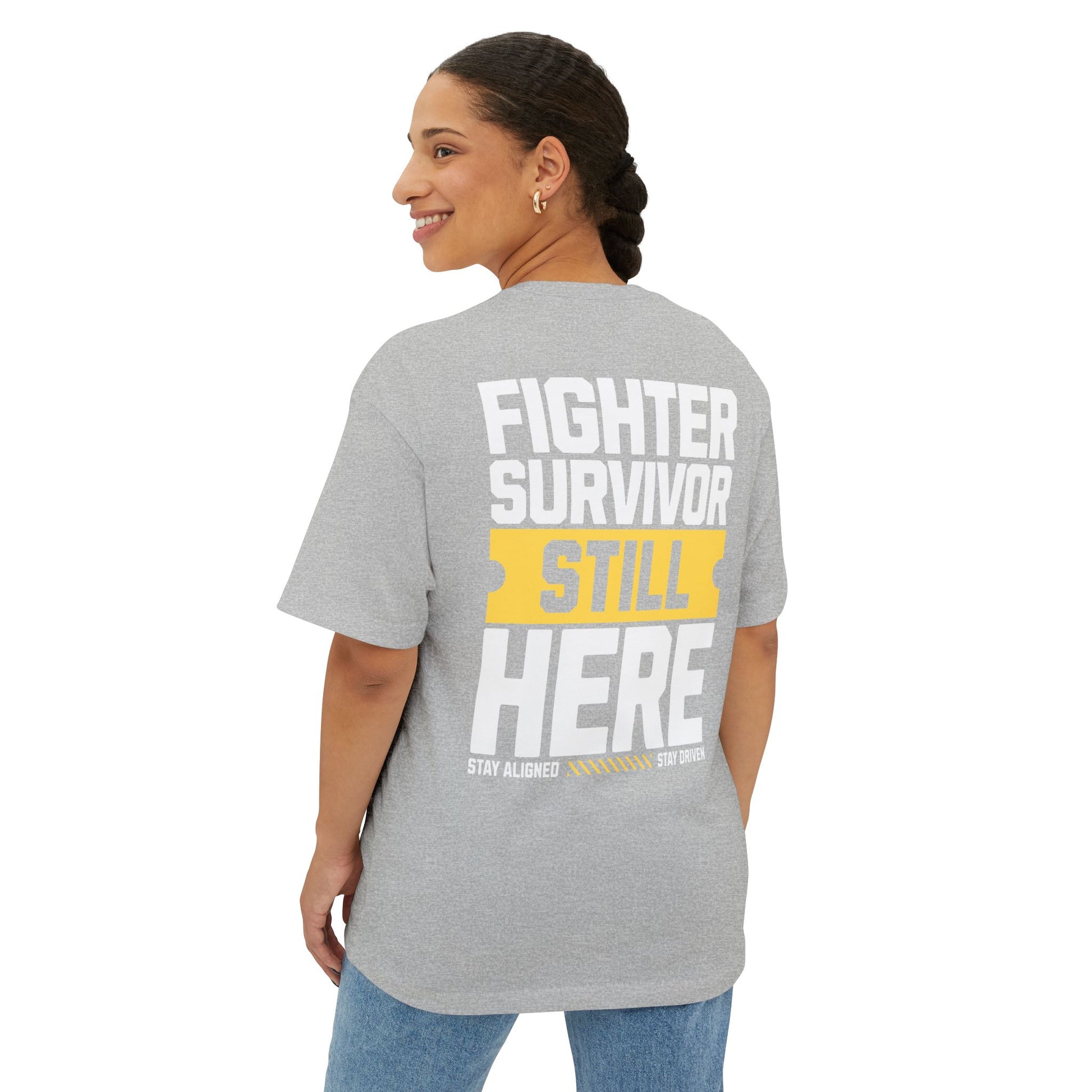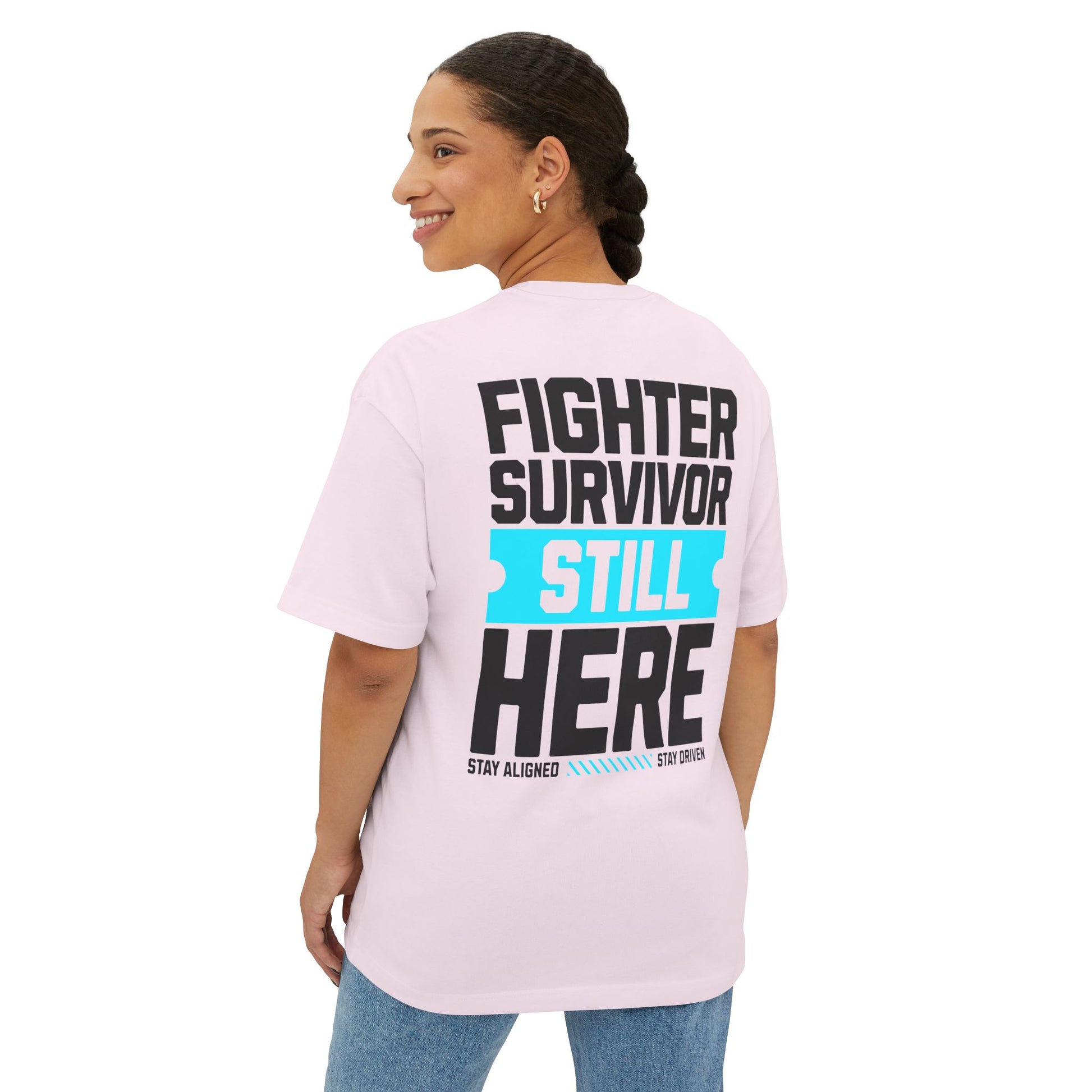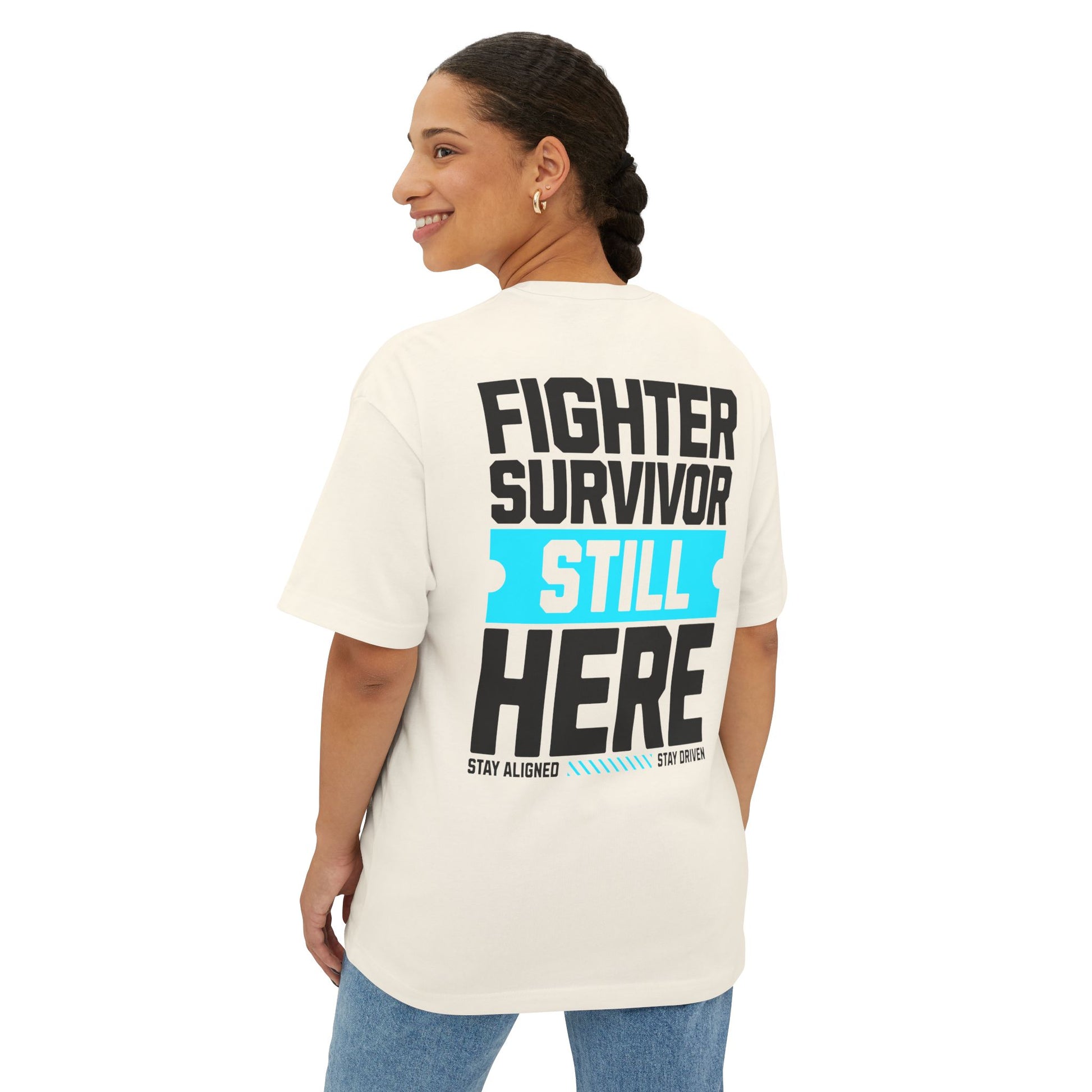 The “Fighter Survivor Still Here” oversized t-shirt is not just clothing – it’s a movement. Designed with extra room for comfort and confidence, this unisex tee is the ultimate blend of style and strength. Its bold statement makes it clear: you didn’t just survive – you came back stronger.