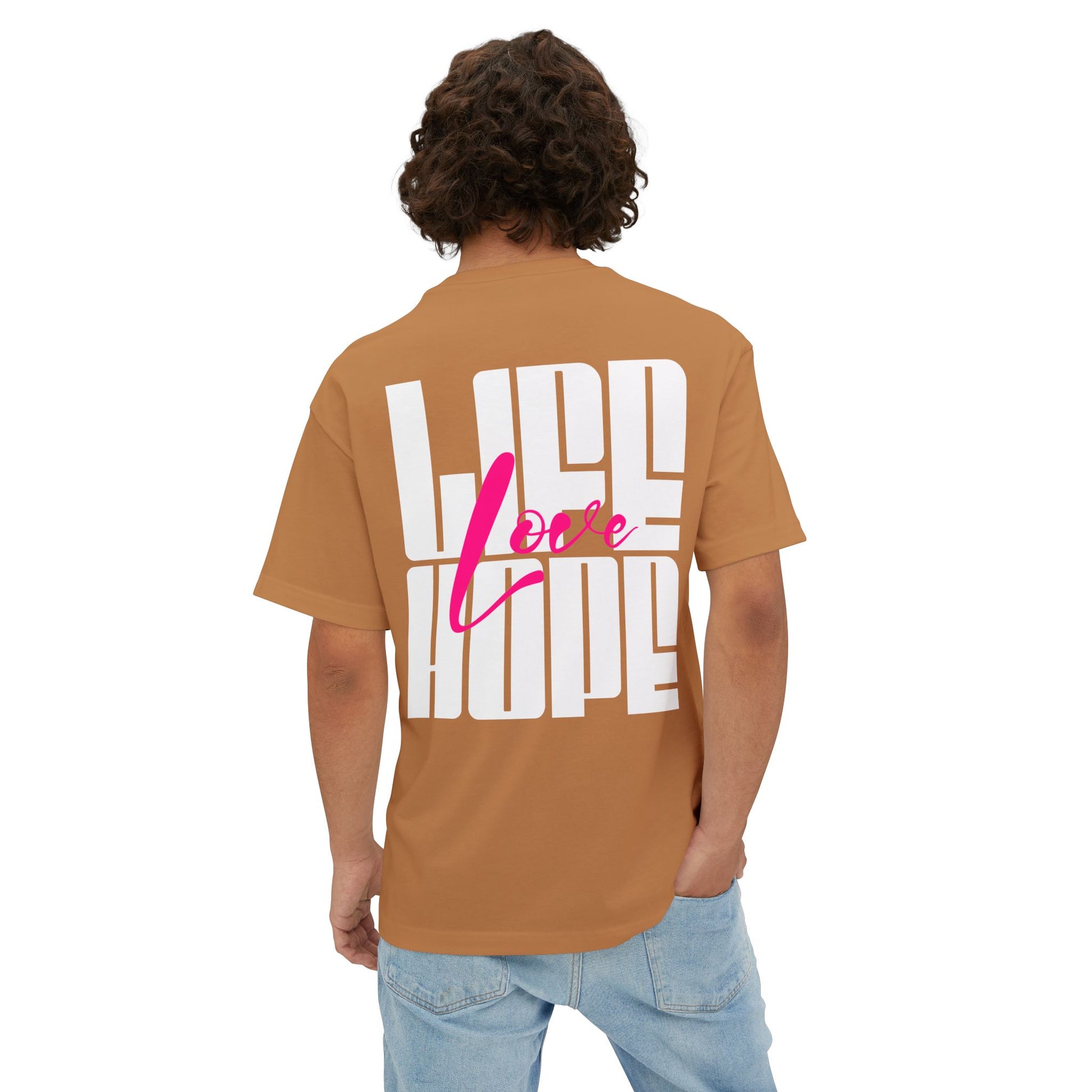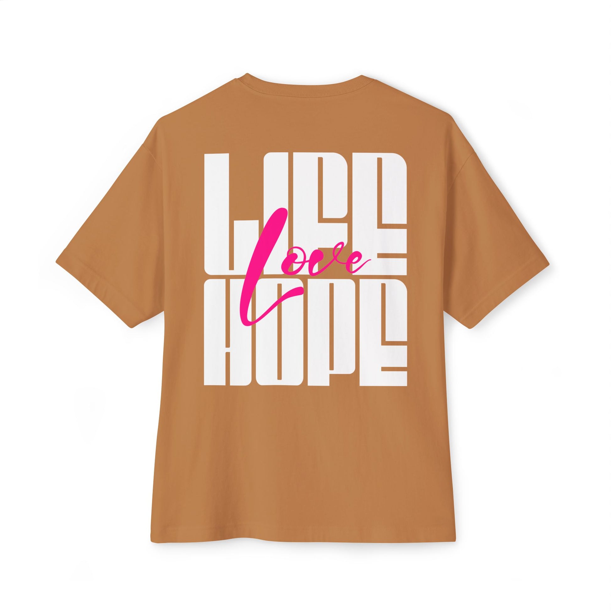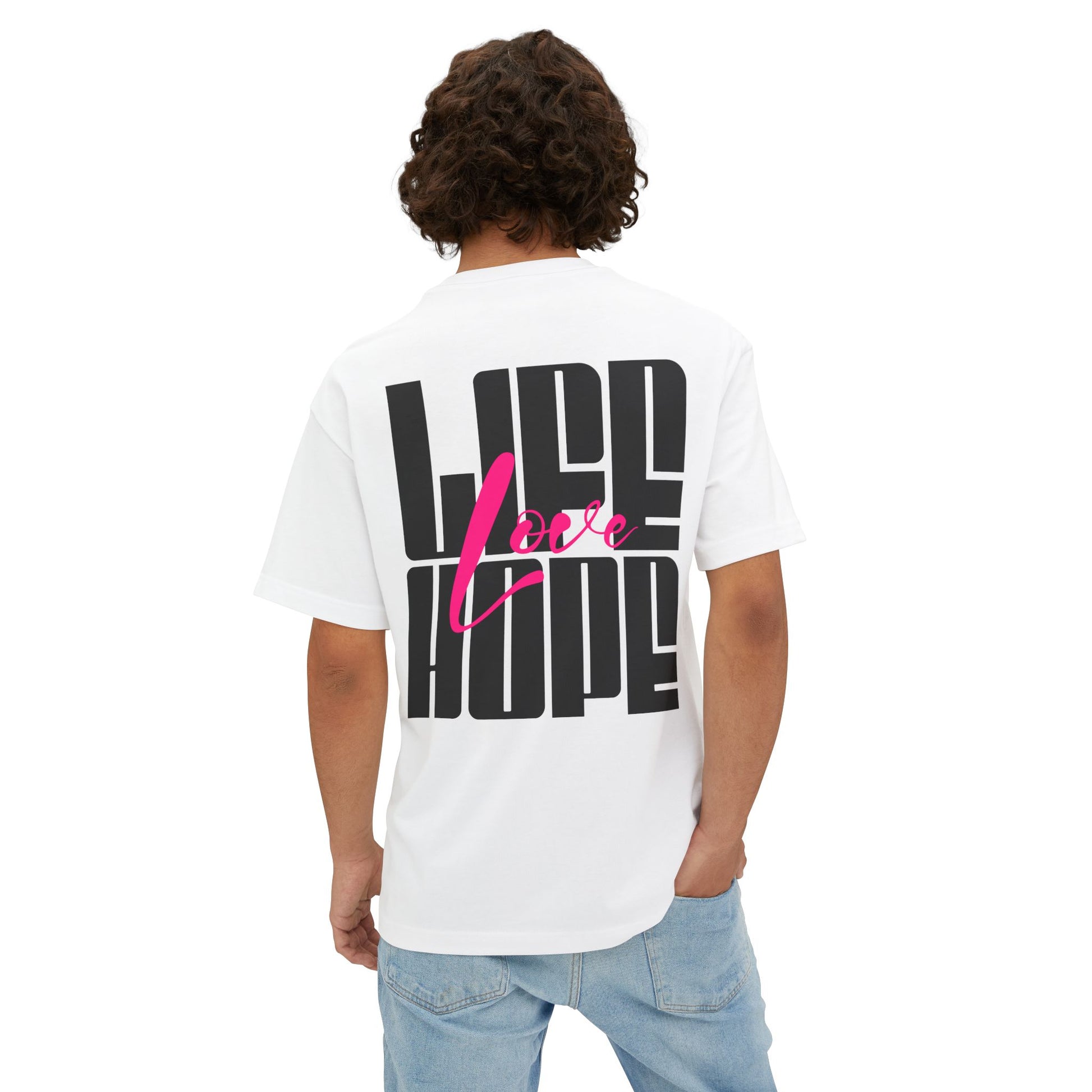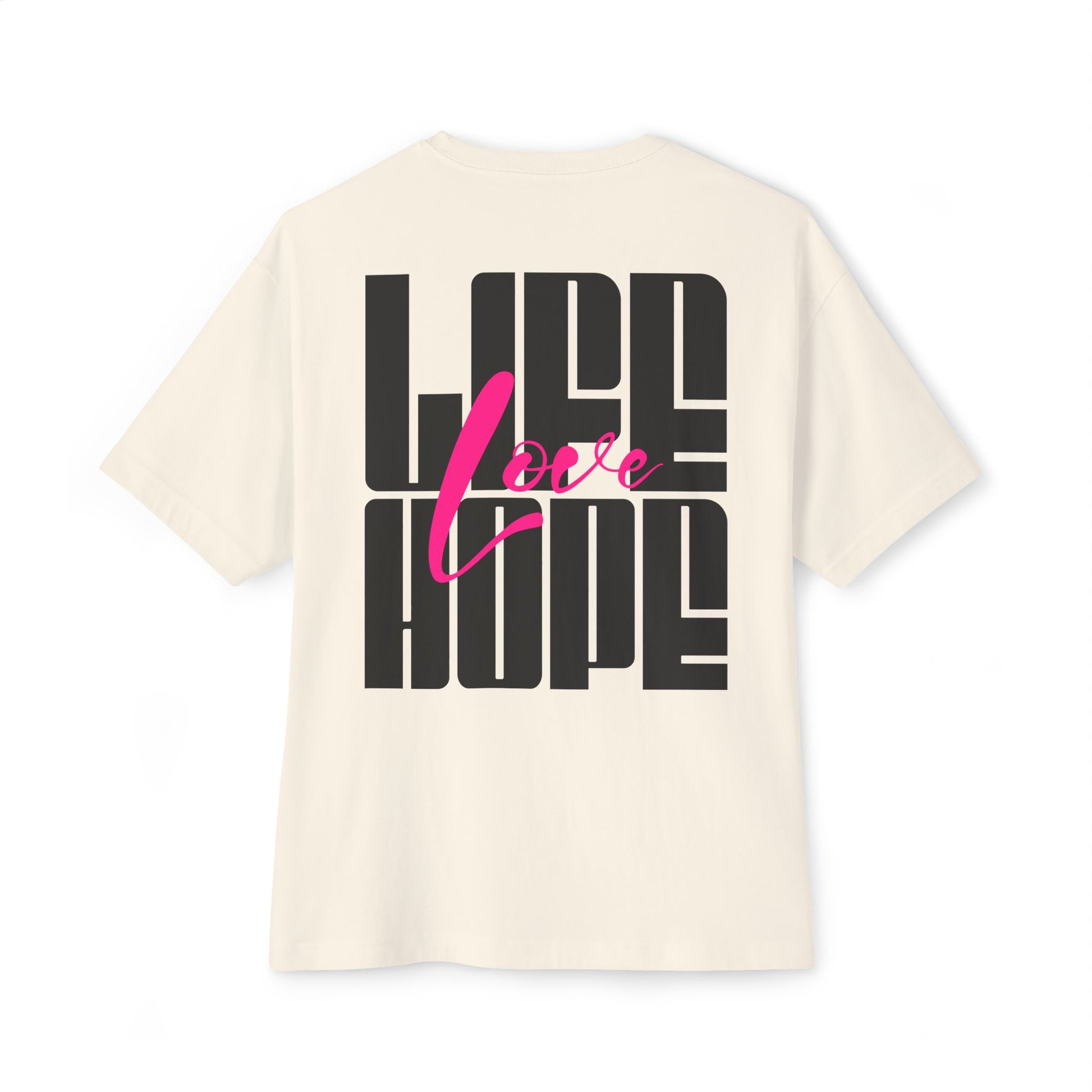 Bold words. Bigger comfort. The Love Life Hope oversized T-shirt is your daily reminder to stand tall, stay strong, and never give up on what matters most. With a relaxed fit and premium cotton, it’s ideal for effortless style while spreading a message of resilience and hope.