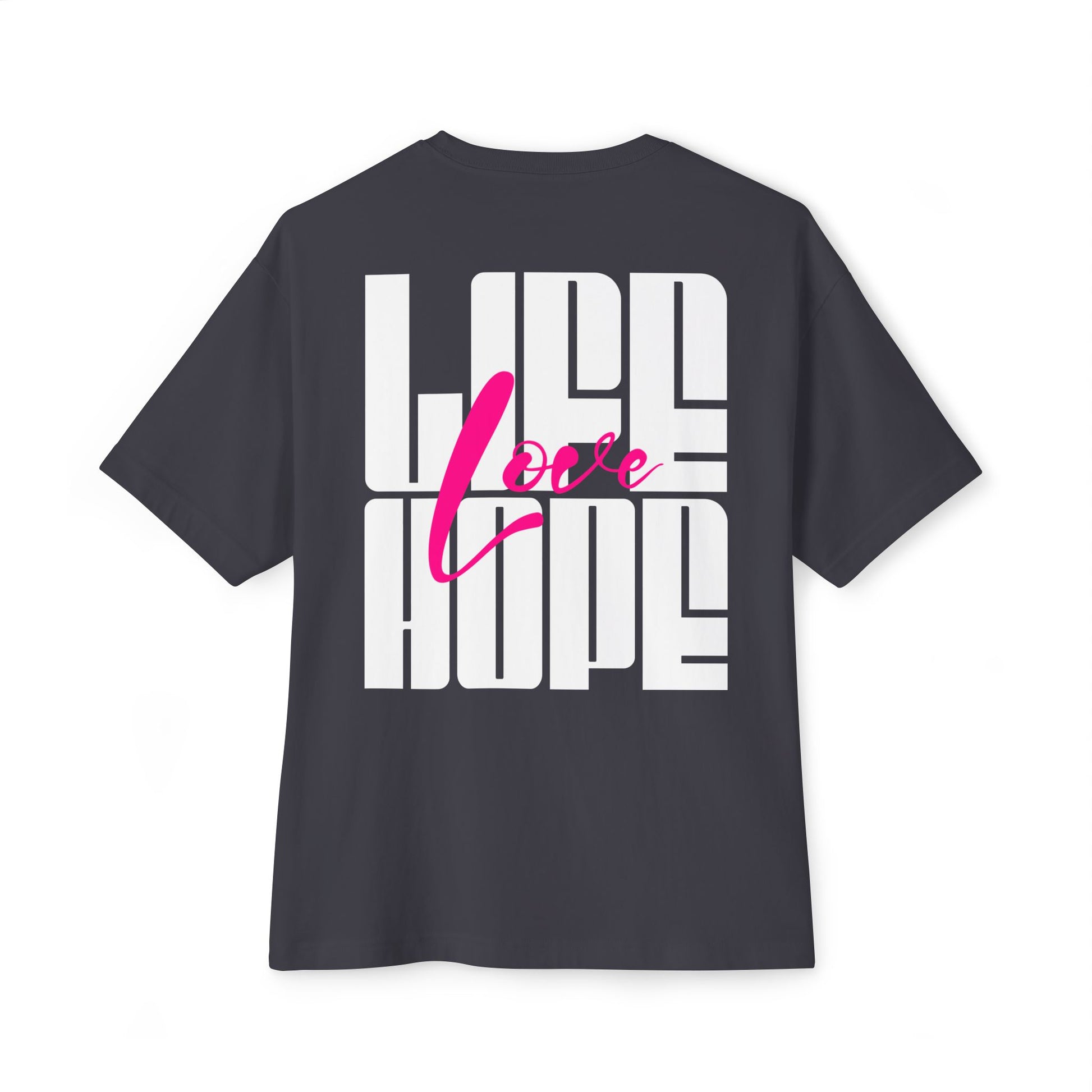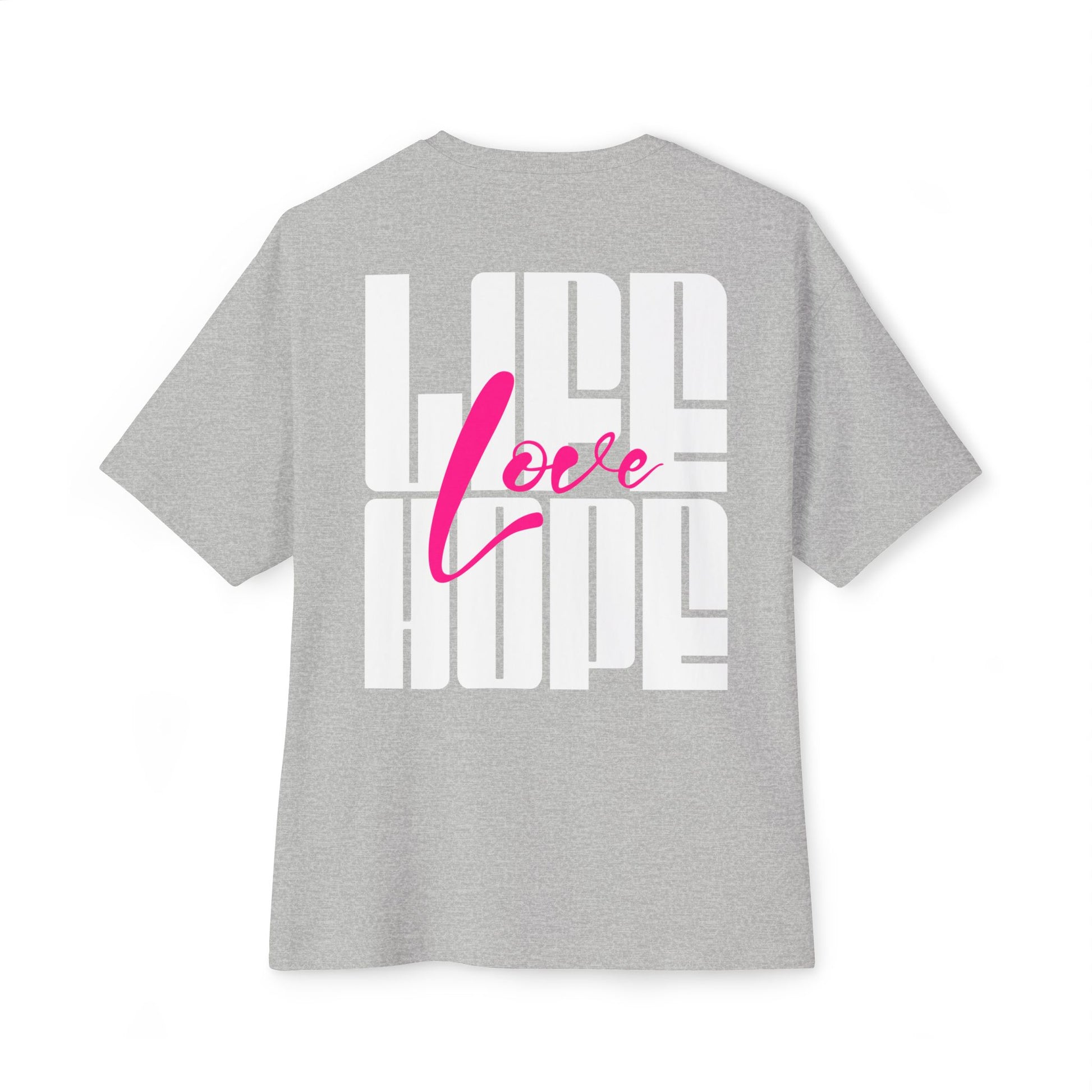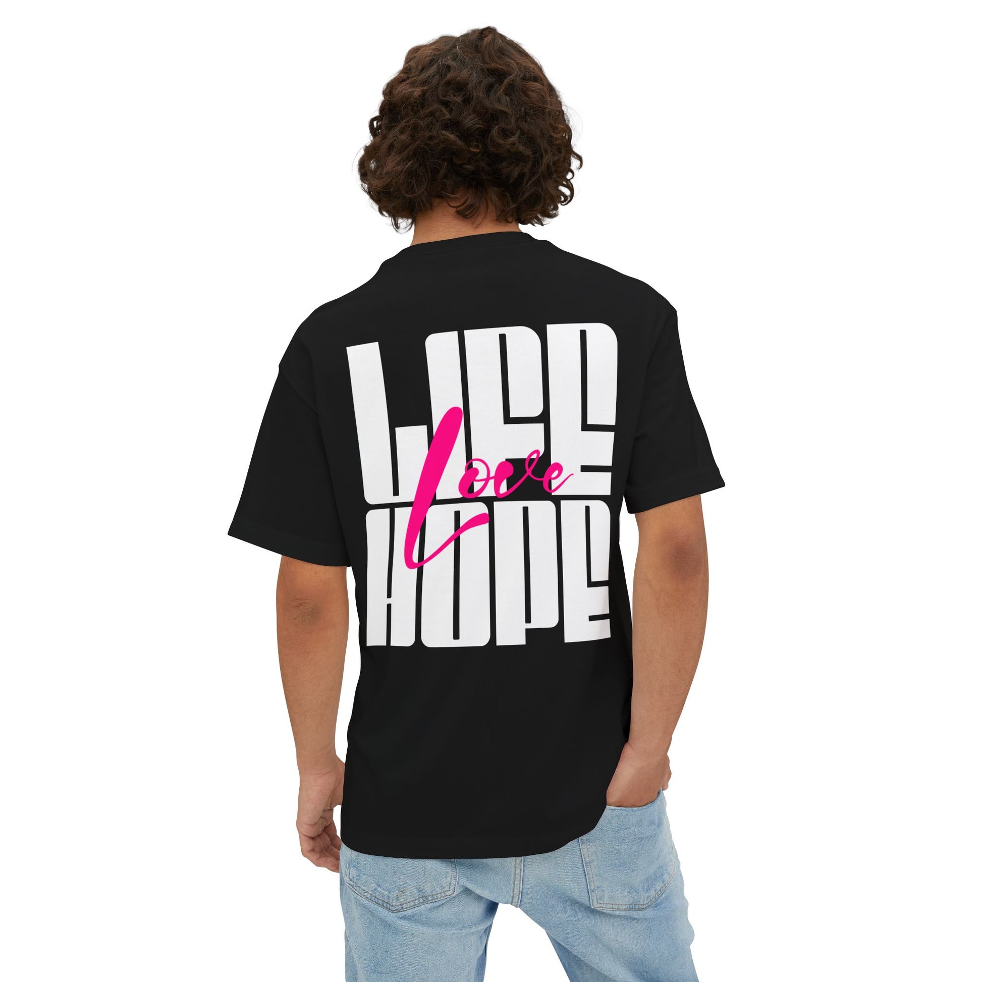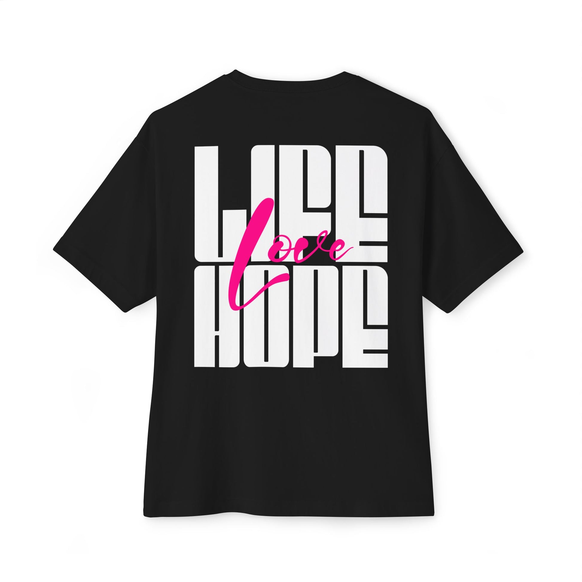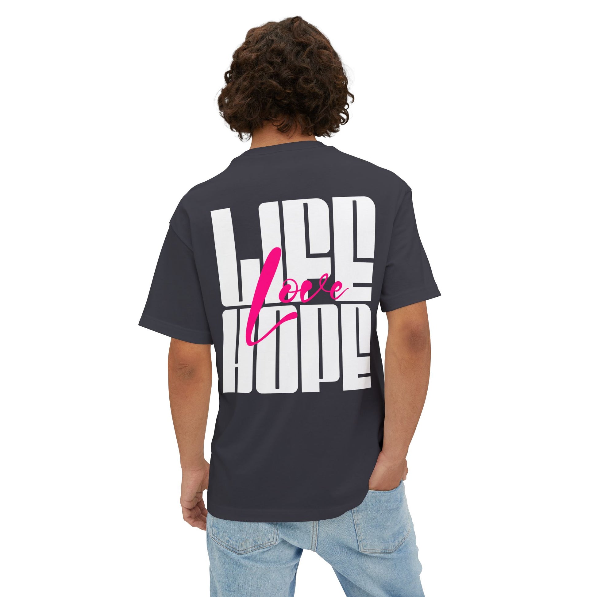 Bold words. Bigger comfort. The Love Life Hope oversized T-shirt is your daily reminder to stand tall, stay strong, and never give up on what matters most. With a relaxed fit and premium cotton, it’s ideal for effortless style while spreading a message of resilience and hope.