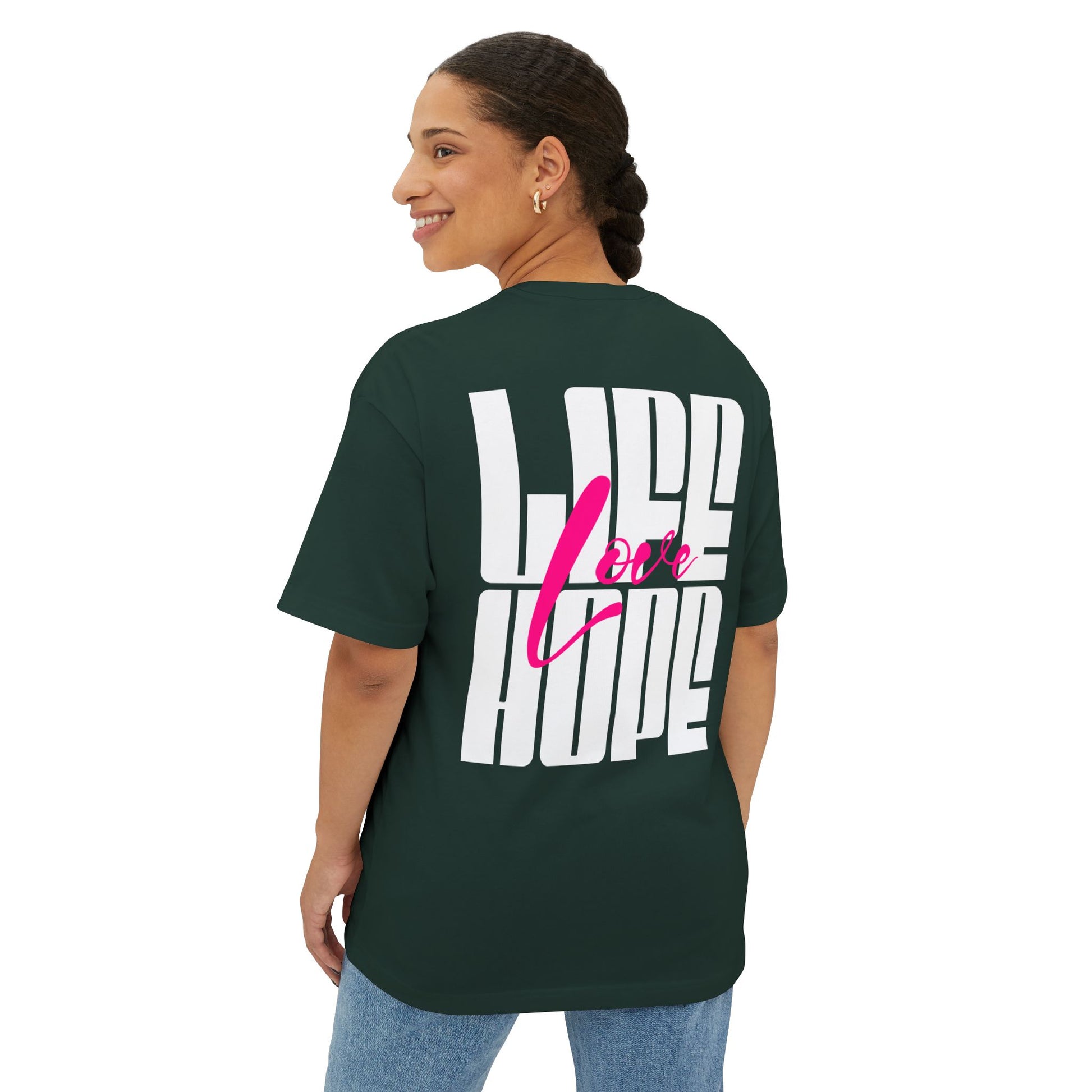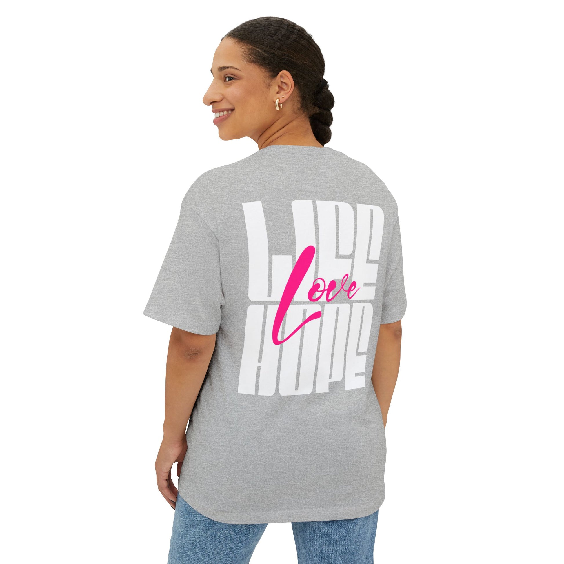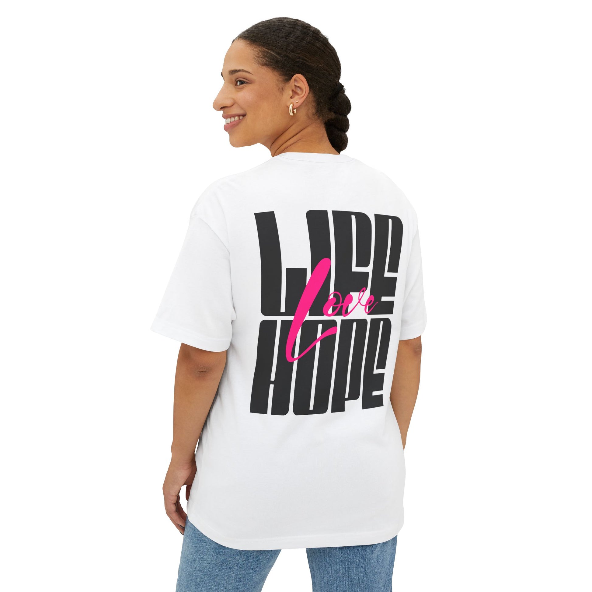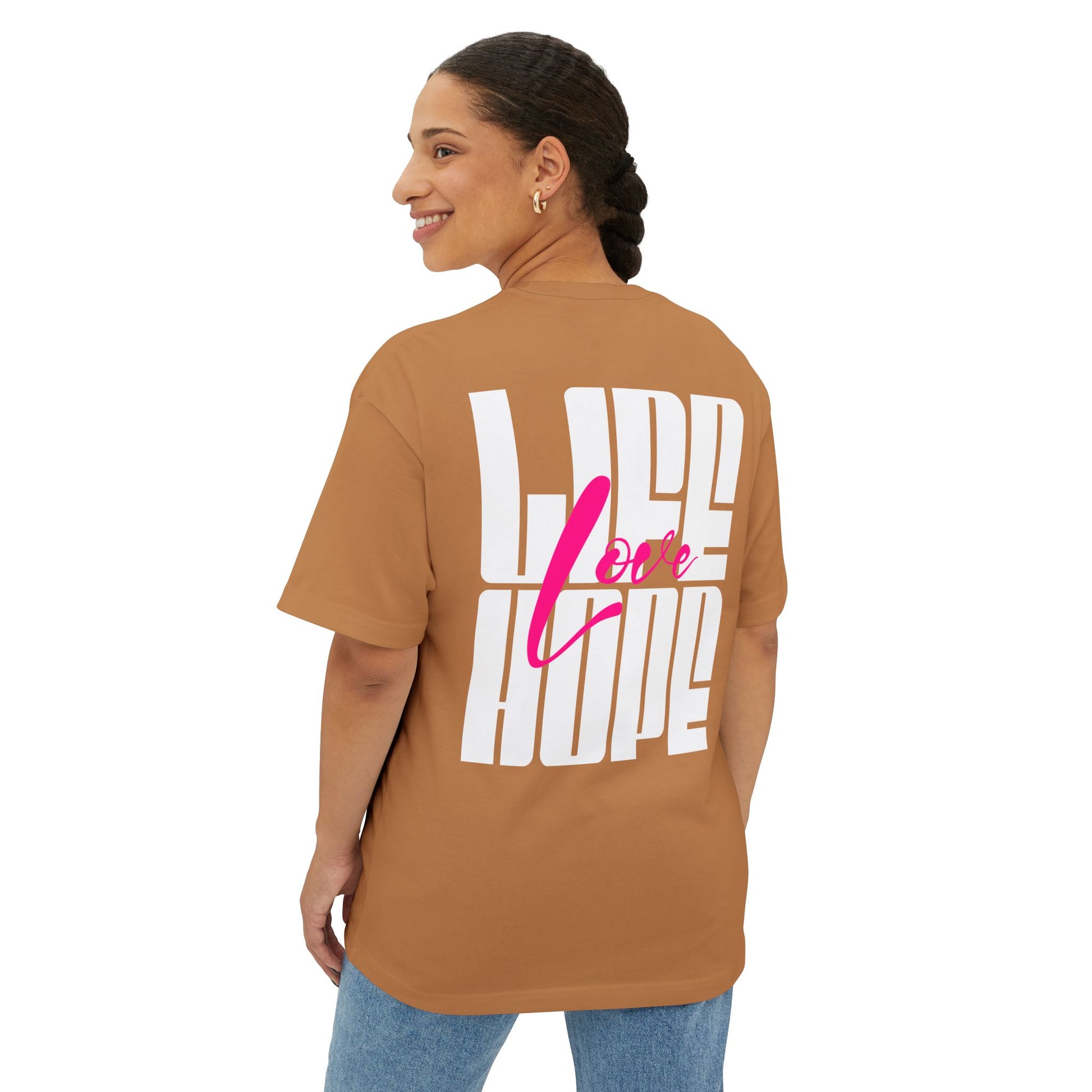 Bold words. Bigger comfort. The Love Life Hope oversized T-shirt is your daily reminder to stand tall, stay strong, and never give up on what matters most. With a relaxed fit and premium cotton, it’s ideal for effortless style while spreading a message of resilience and hope.