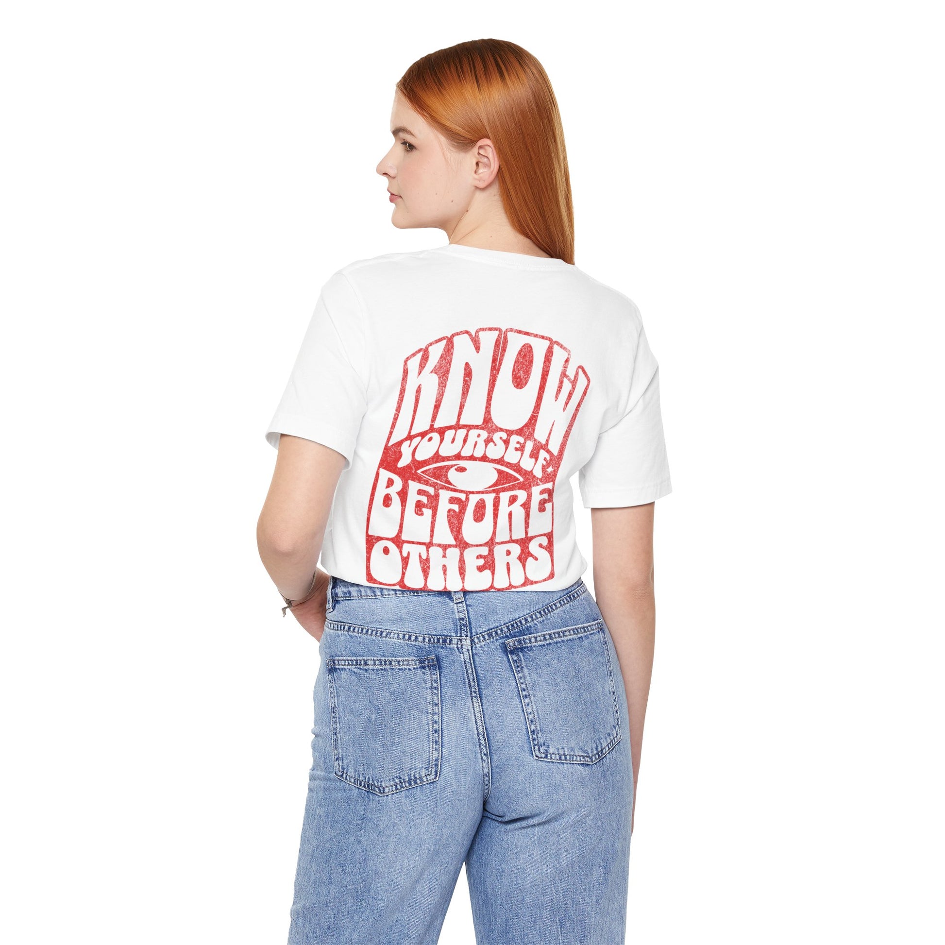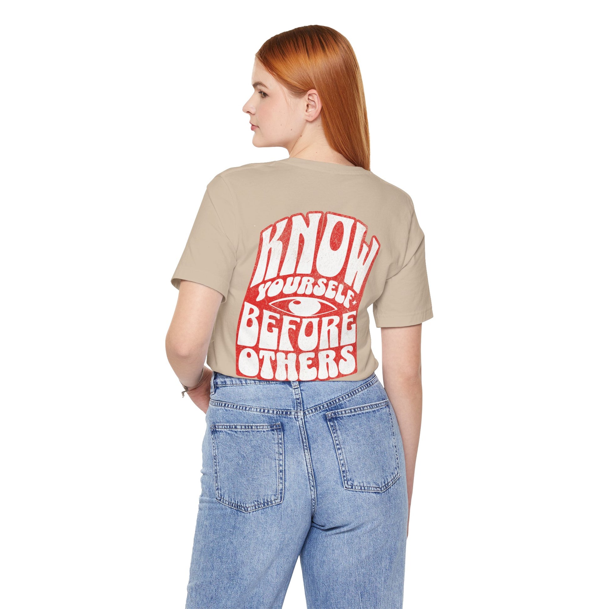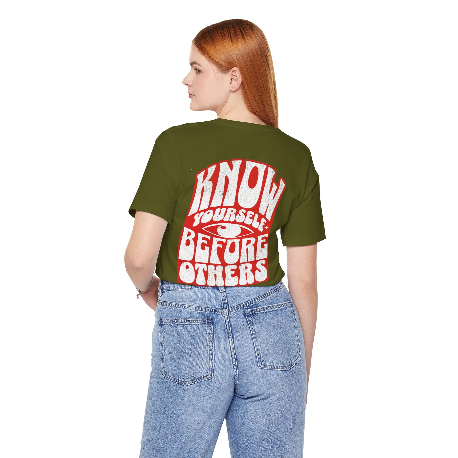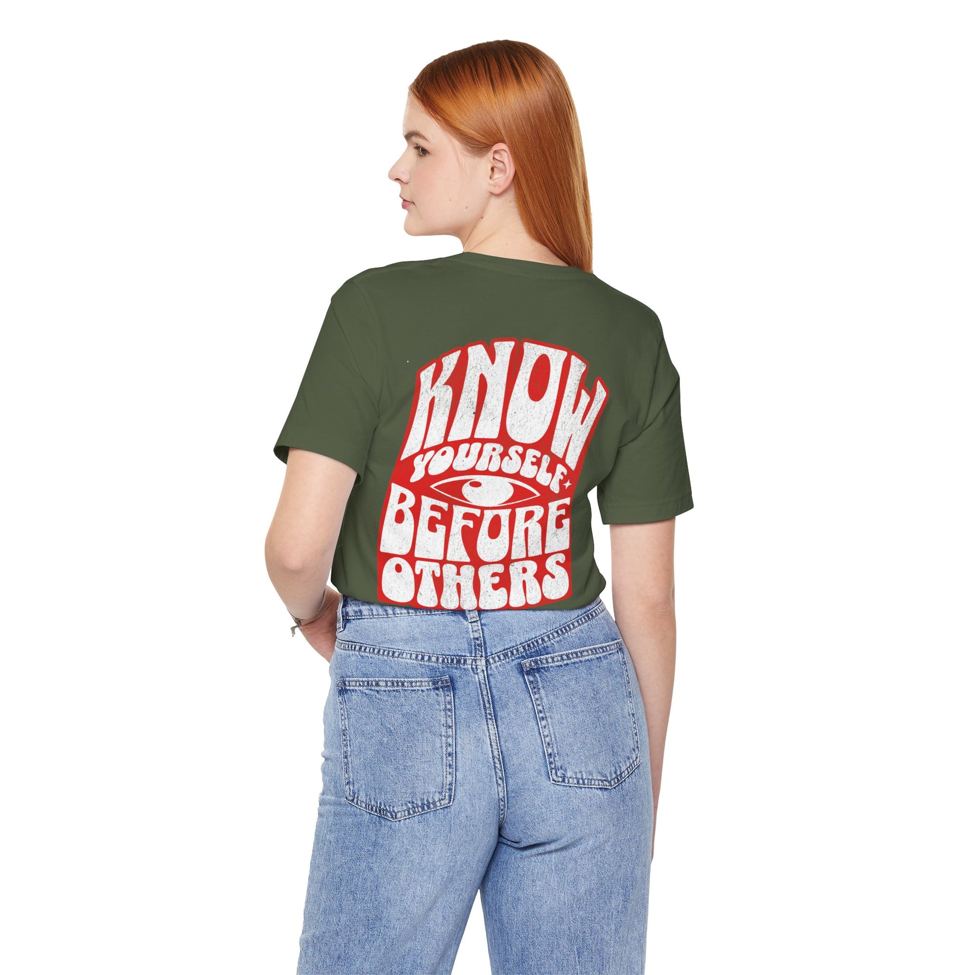 Wisdom starts within. This unisex tee is a soft, stylish reminder to know yourself before judging others.