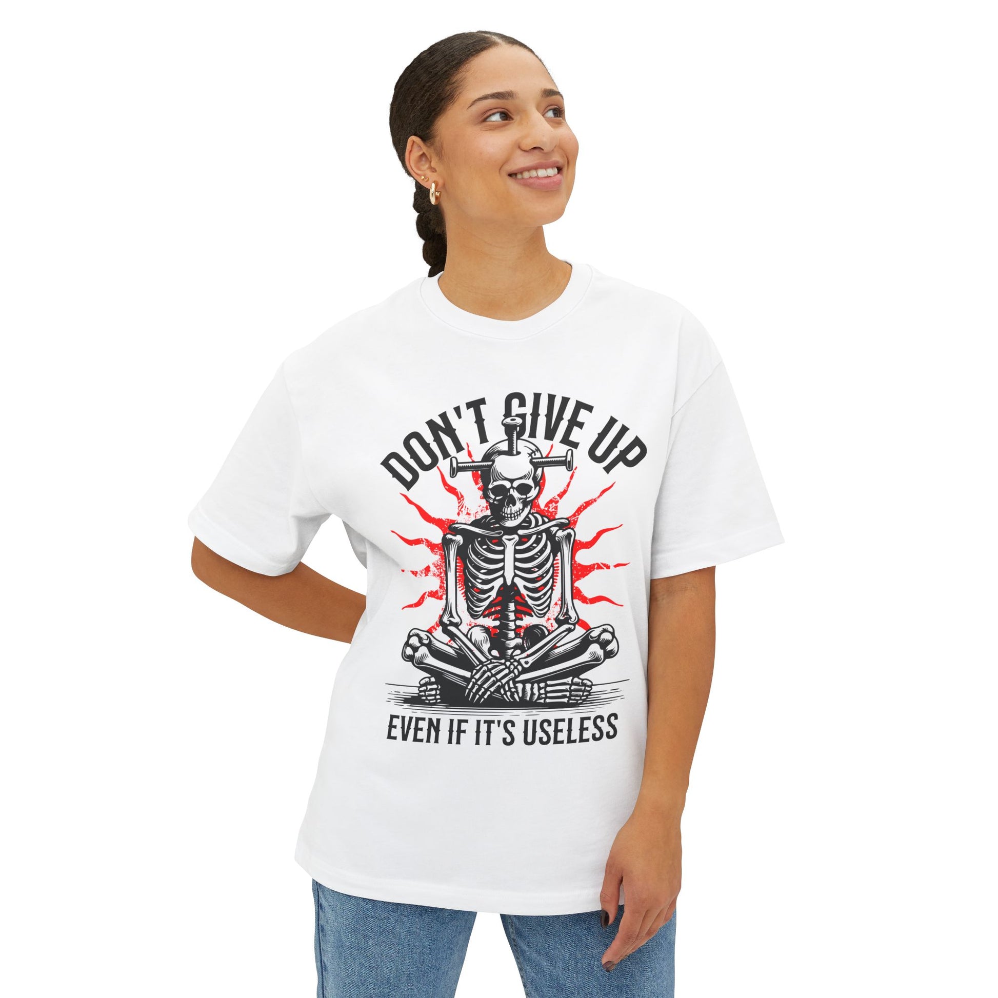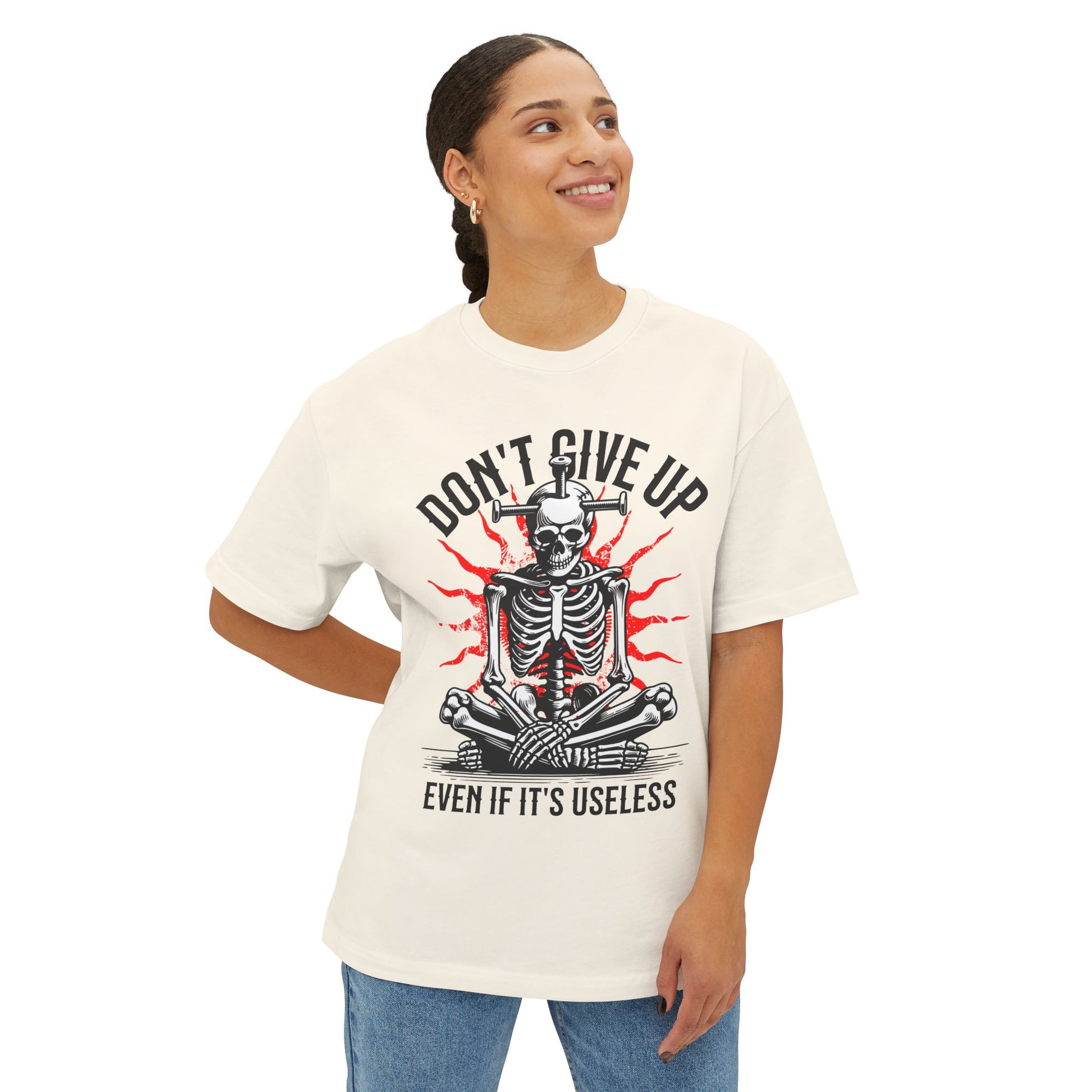 When life feels pointless, push anyway. This oversized tee blends comfort with a message of unrelenting grit. Soft cotton, relaxed fit, and a design that speaks to those who keep moving forward—no matter what.