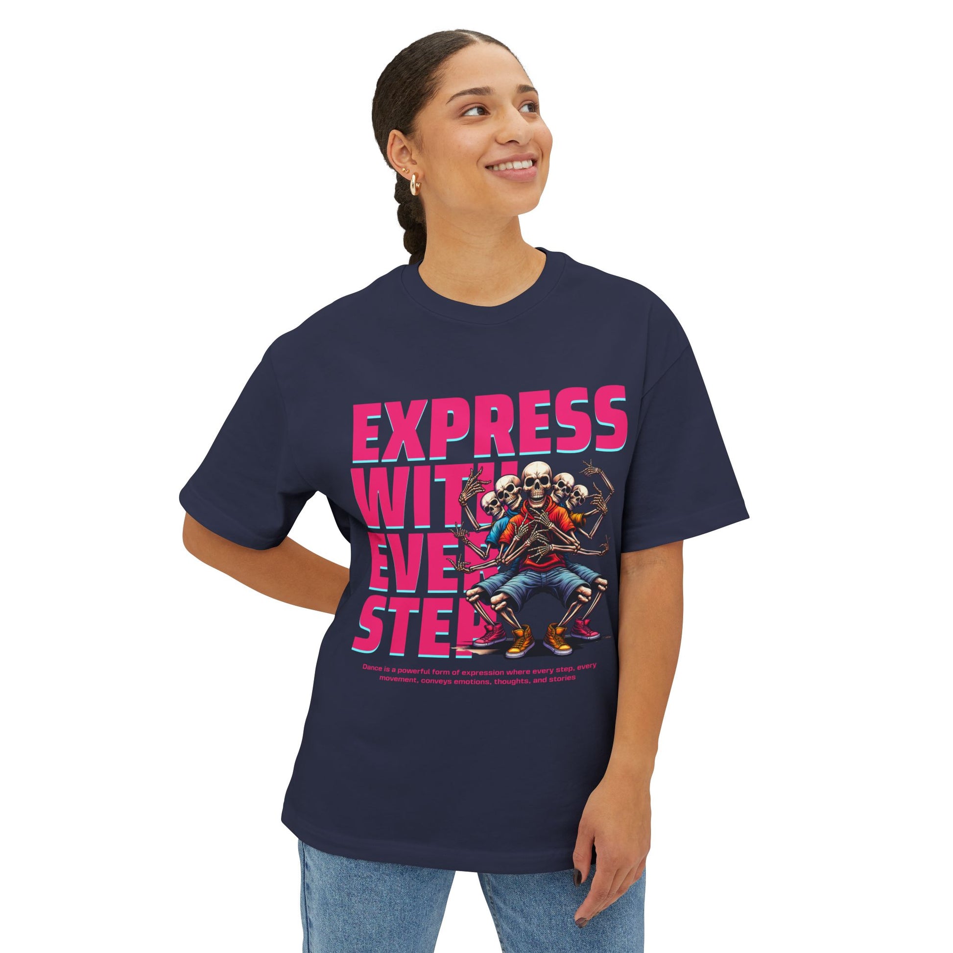 Your walk tells your story. “Express With Every Step” is a soft, oversized tee for those who carry art, attitude, and authenticity wherever they go.