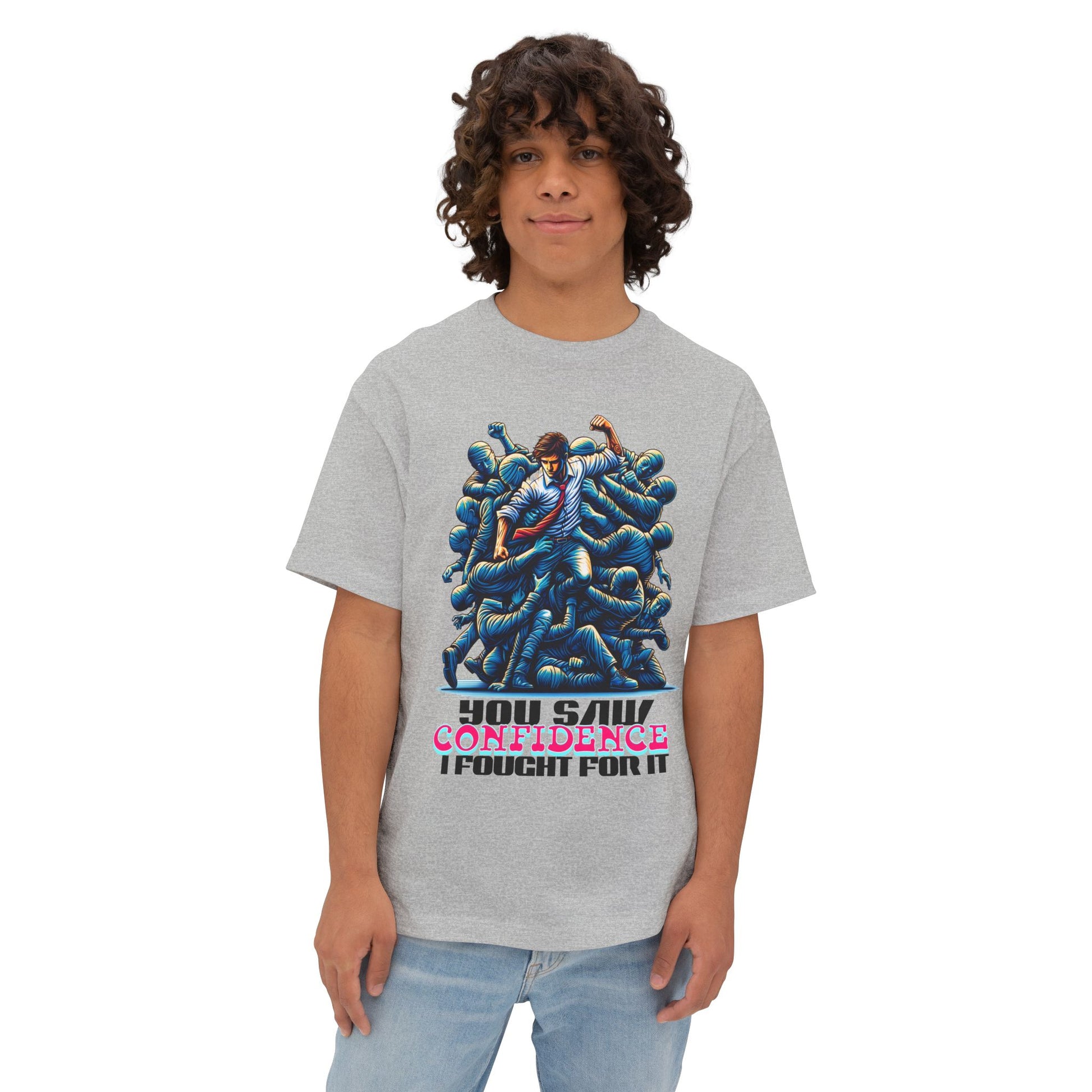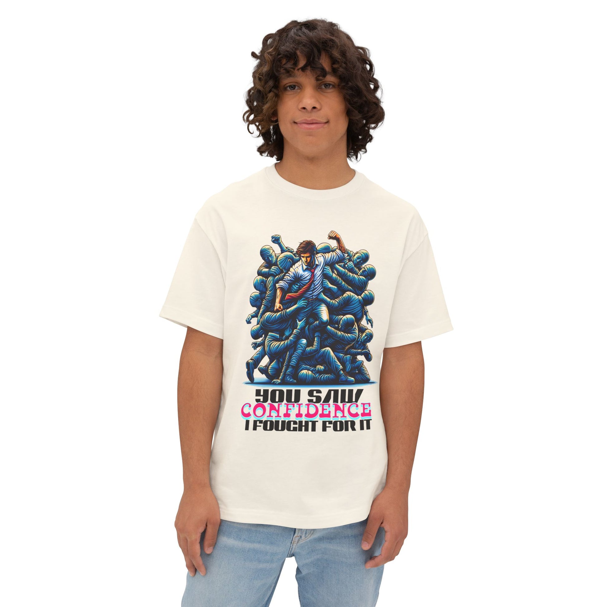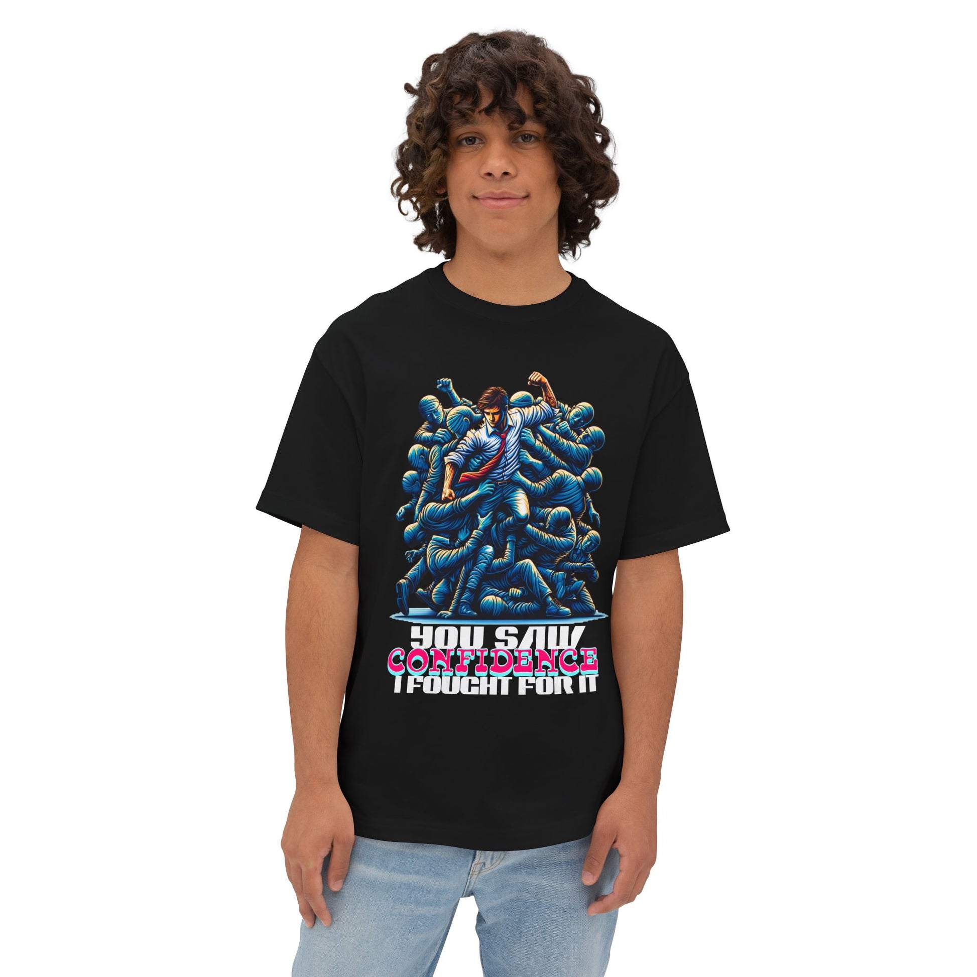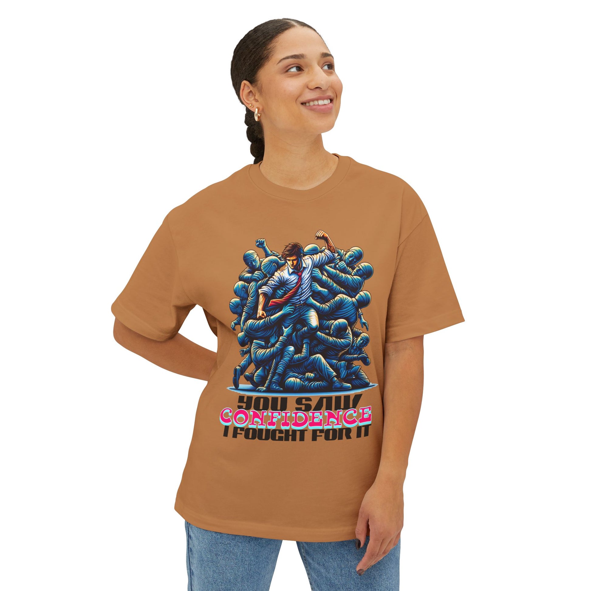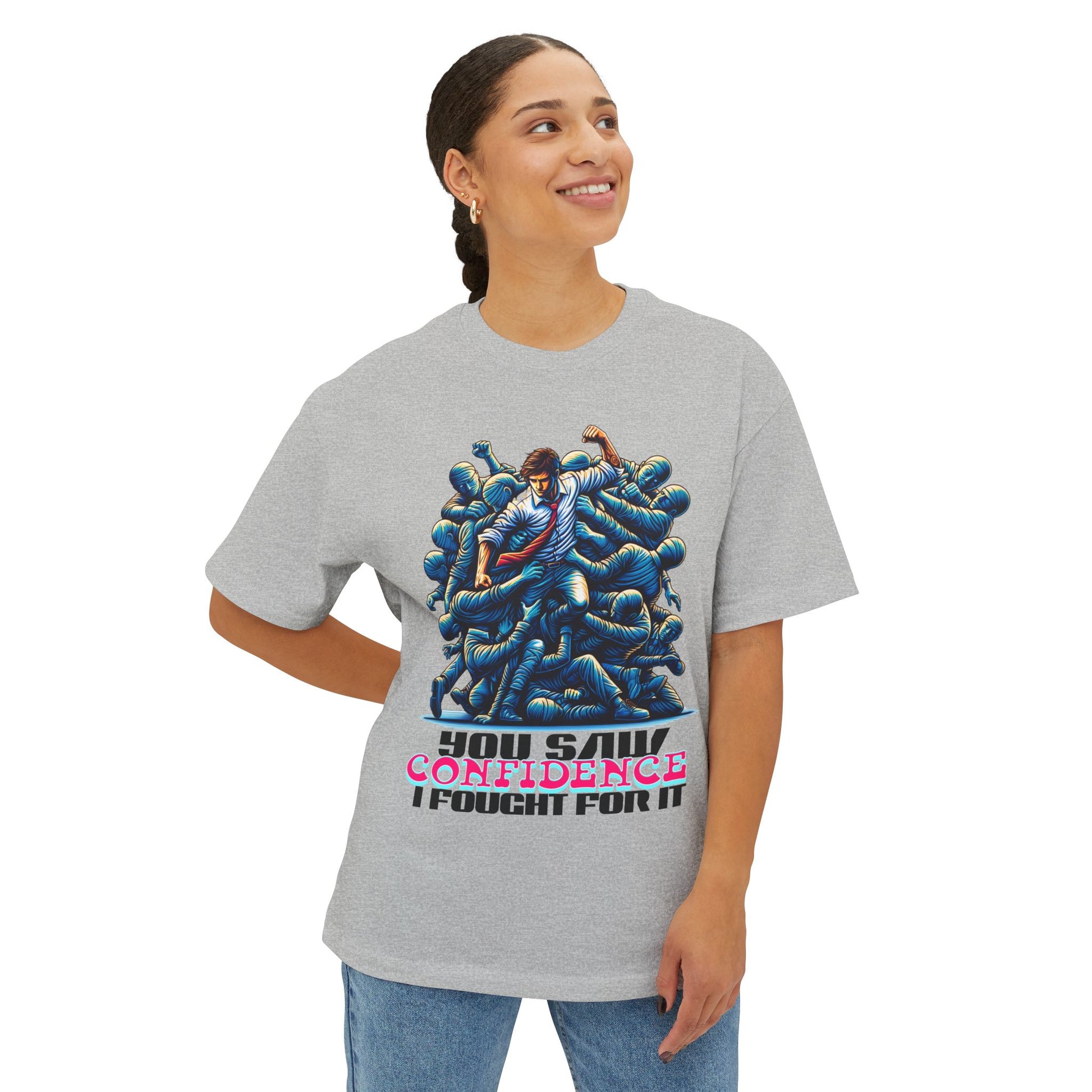 Confidence isn’t given—it’s earned. This oversized tee celebrates your hard-won self-assurance with a message that inspires others to fight for theirs.
