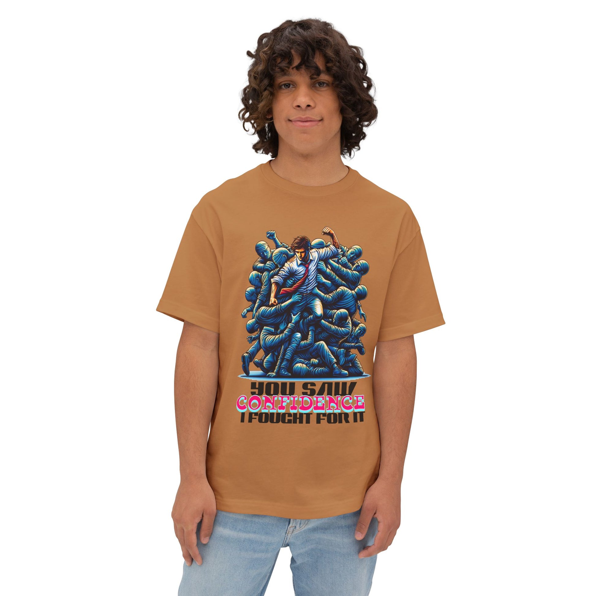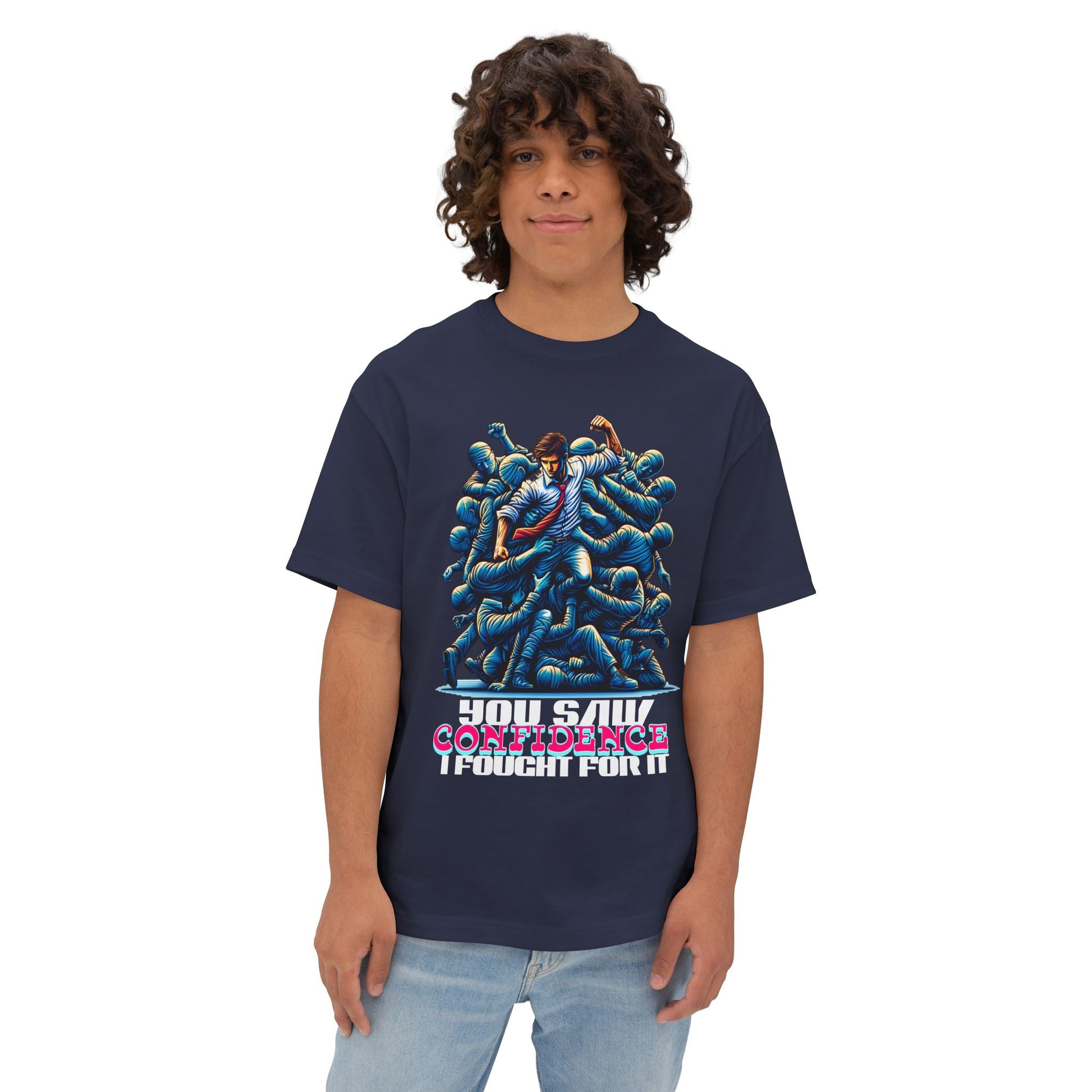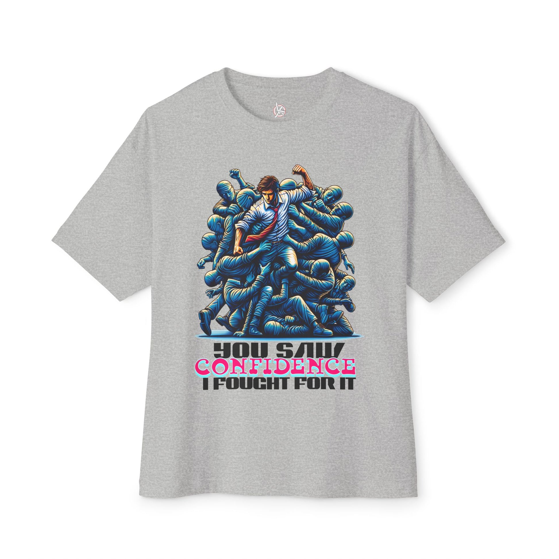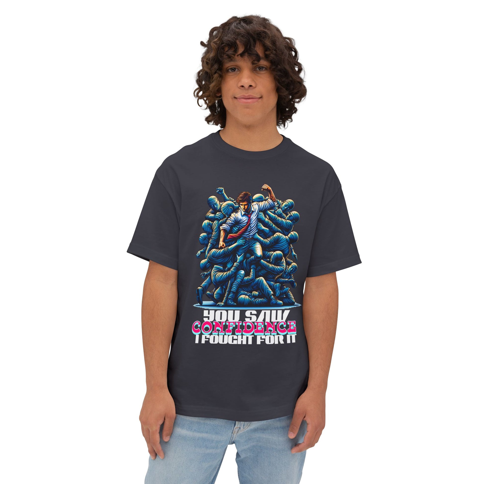 Confidence isn’t given—it’s earned. This oversized tee celebrates your hard-won self-assurance with a message that inspires others to fight for theirs.