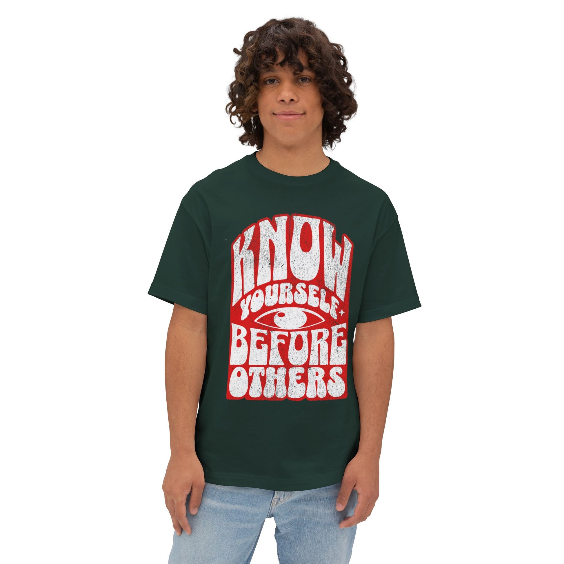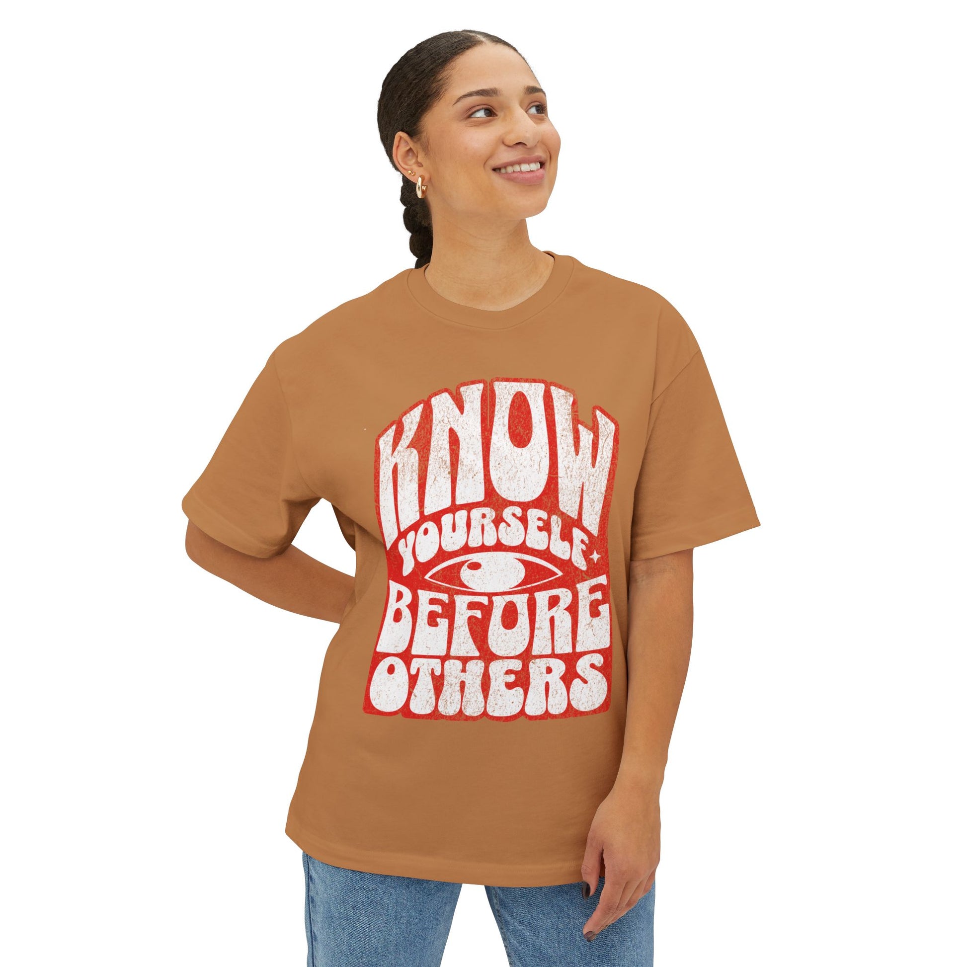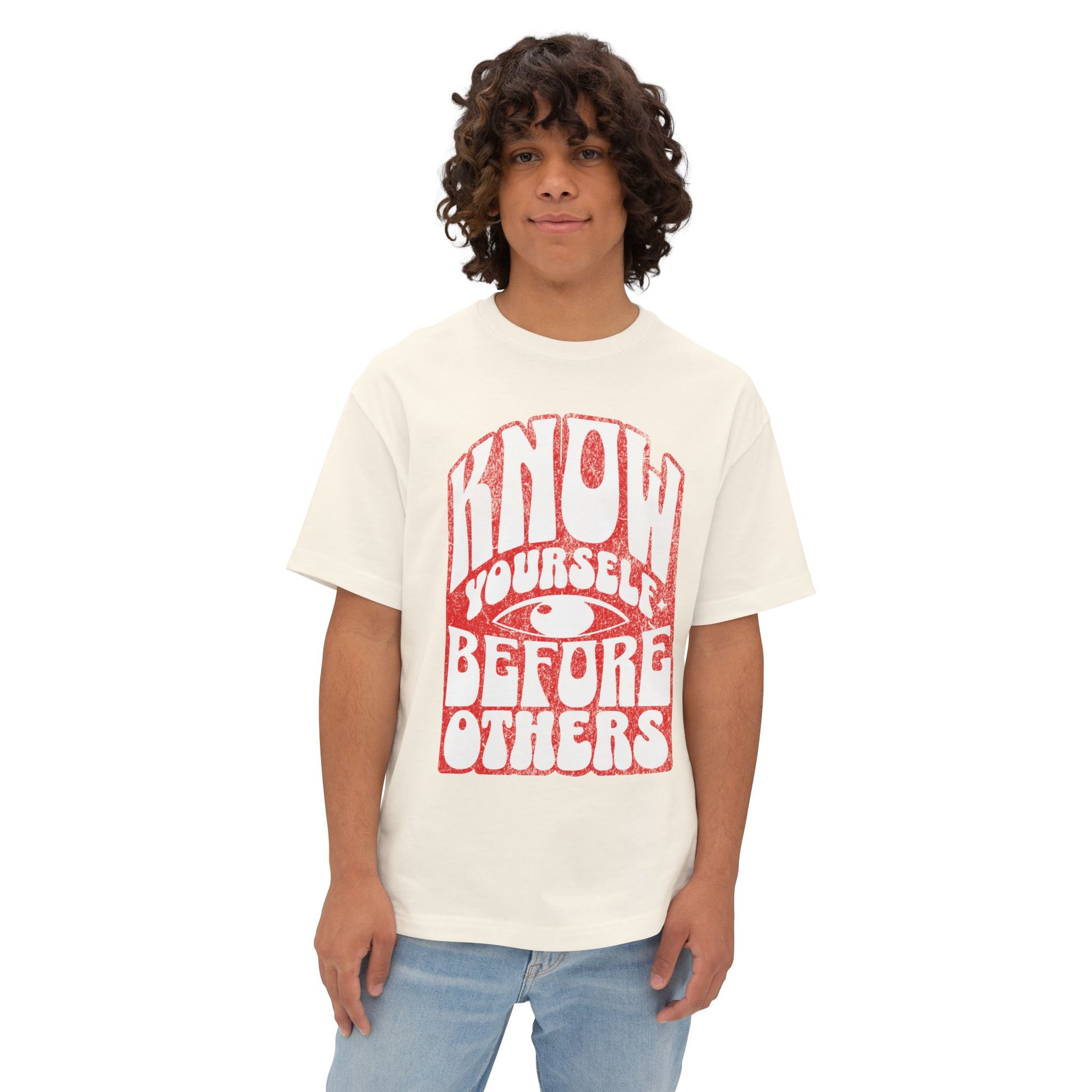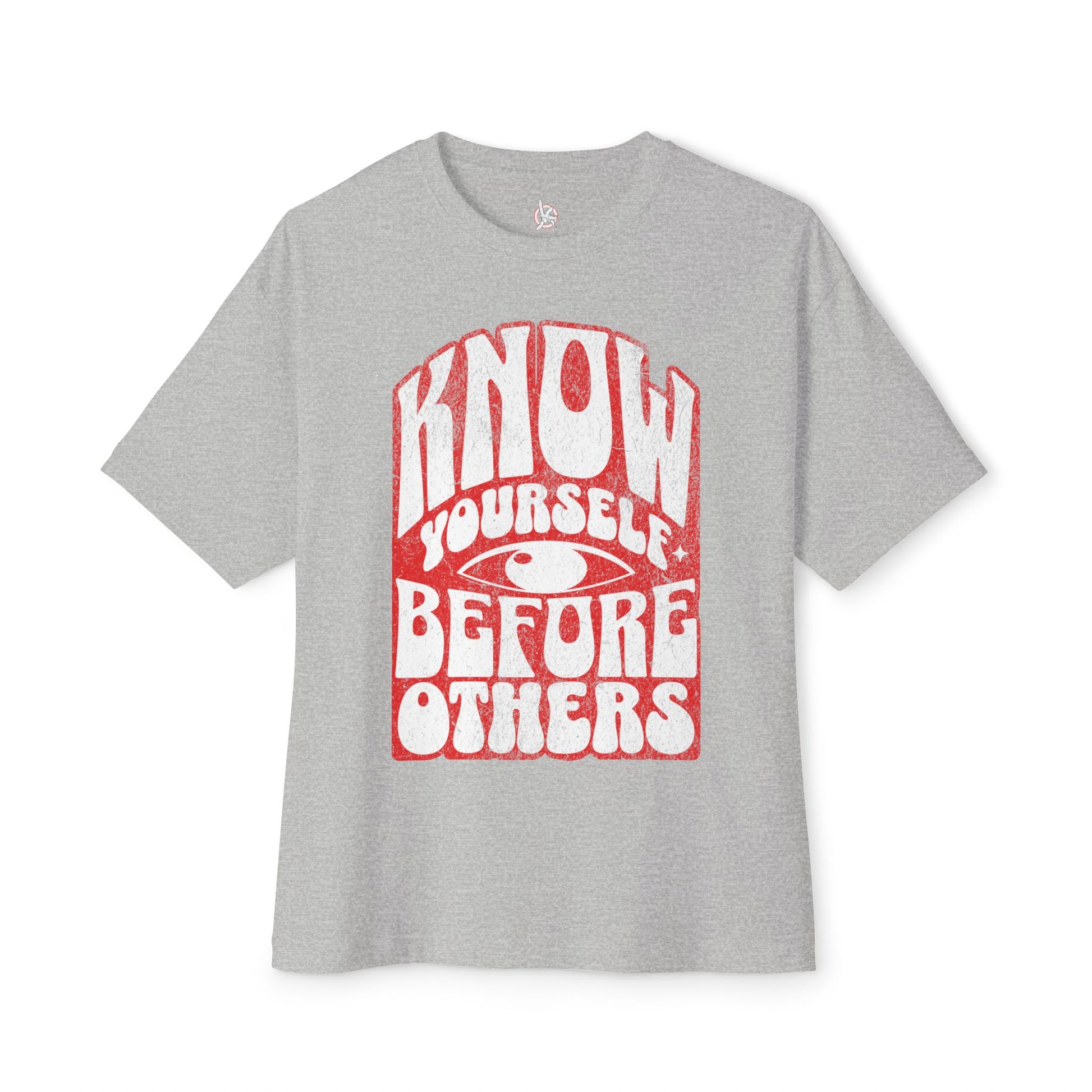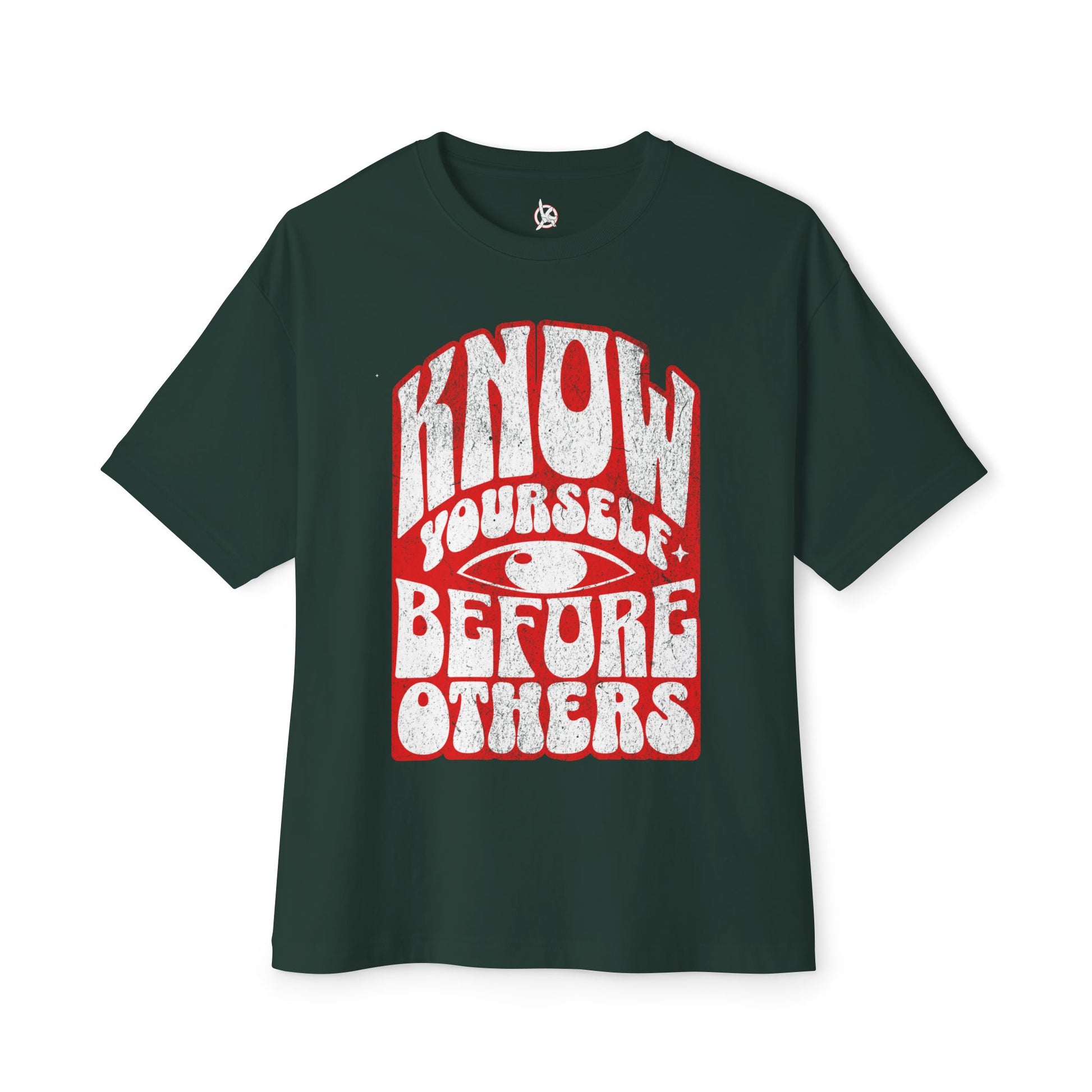 The best guide is a self-guide. “Know Yourself Before Others” reminds you (and everyone around) where wisdom starts. Soft, oversized, thoughtful—it’s fashion that reflects your inner journey.