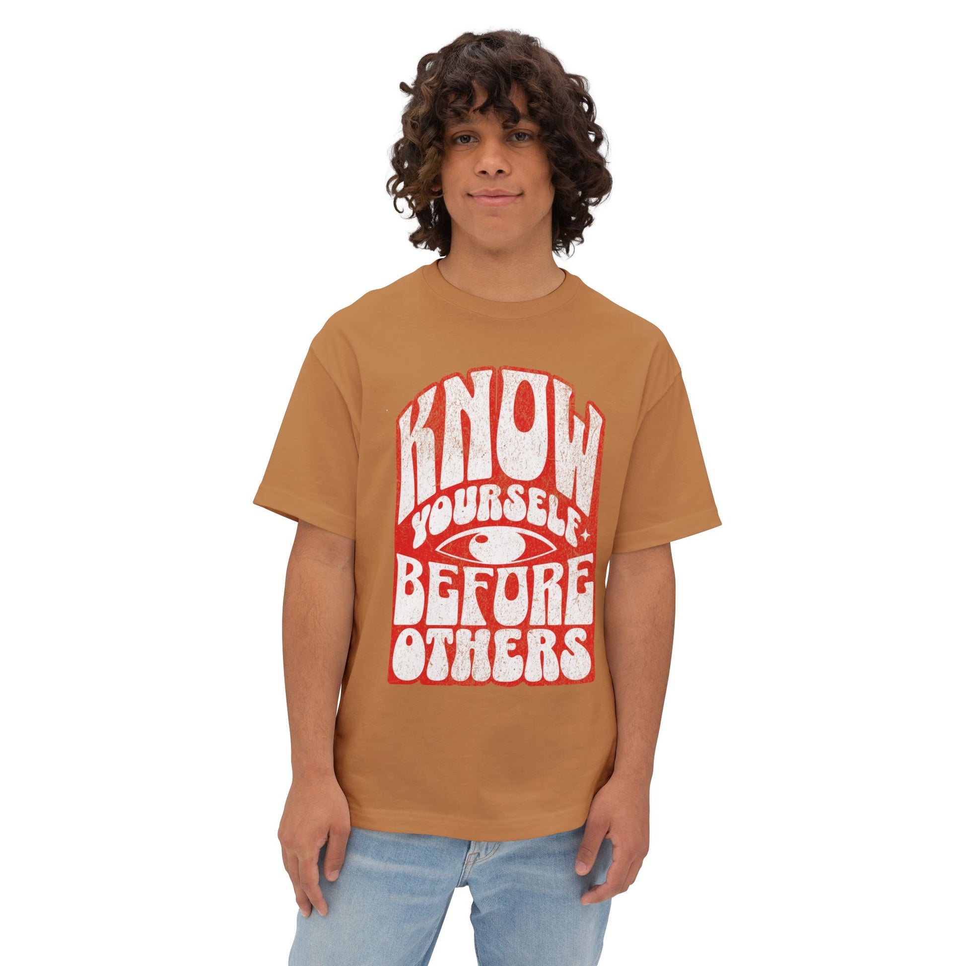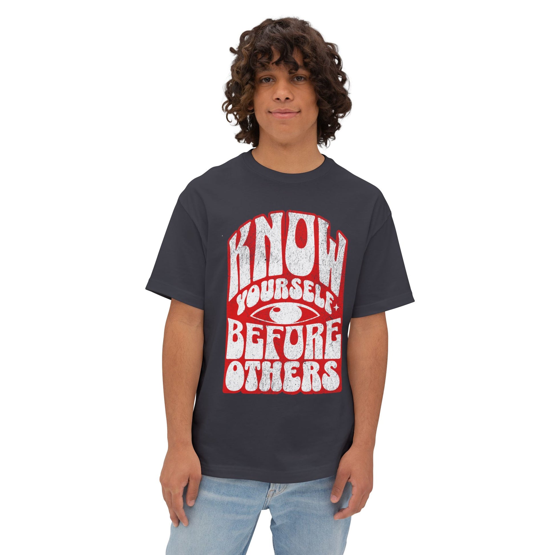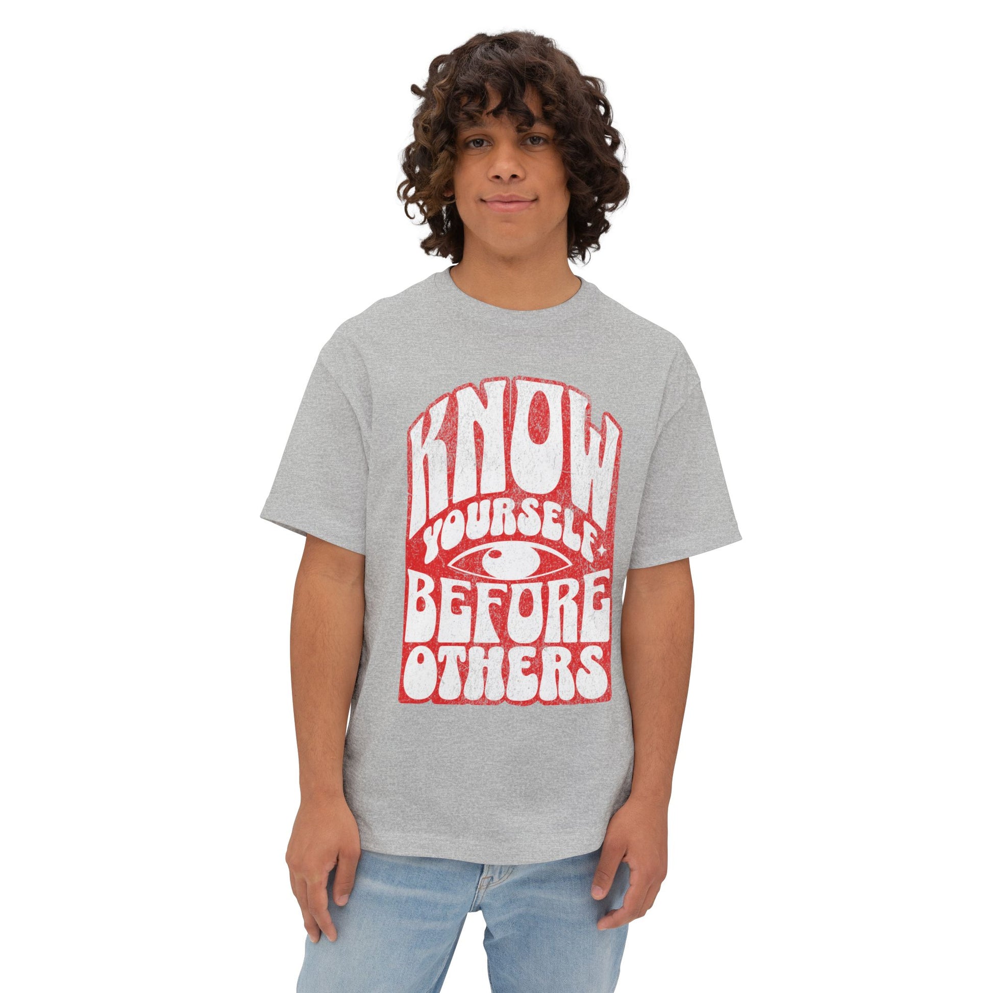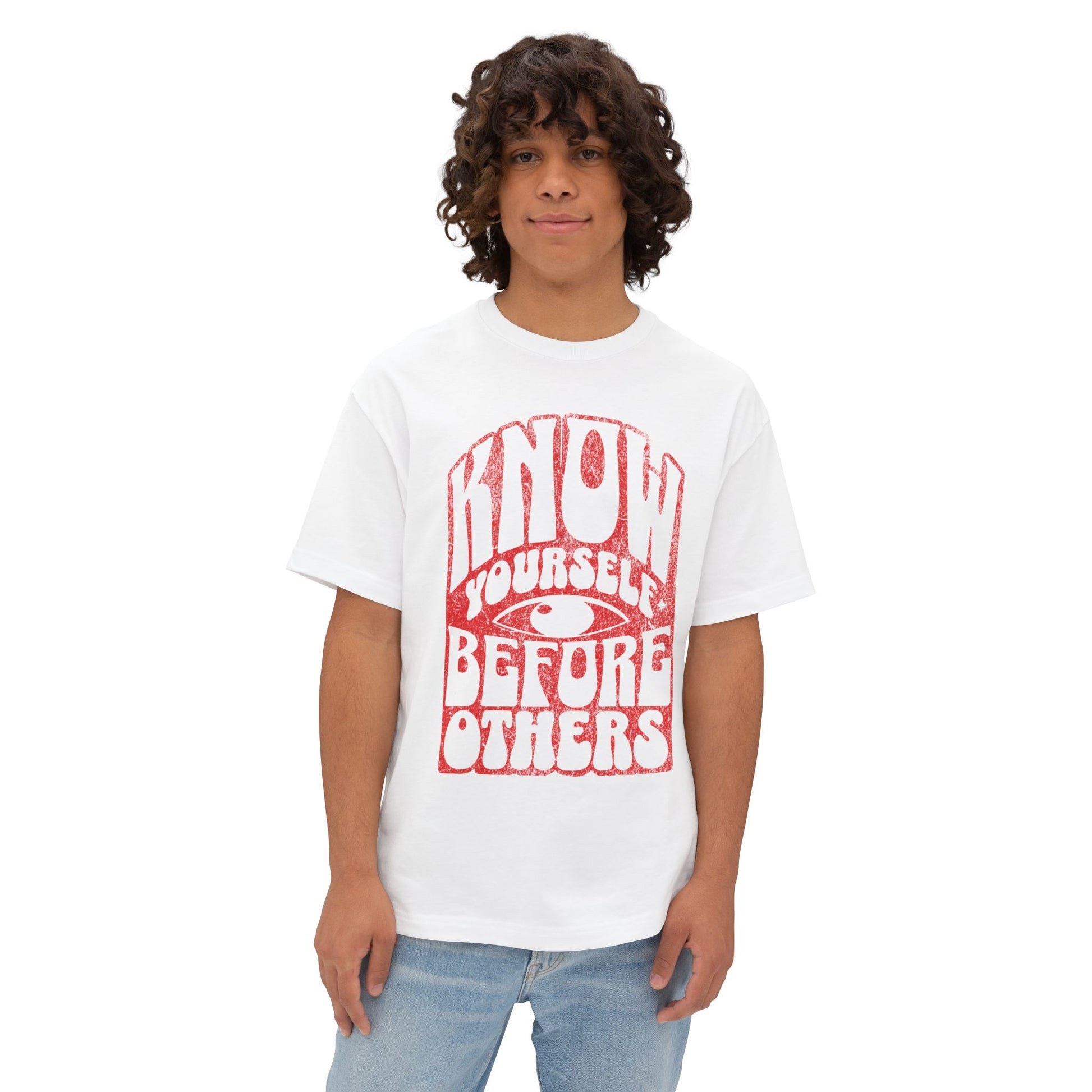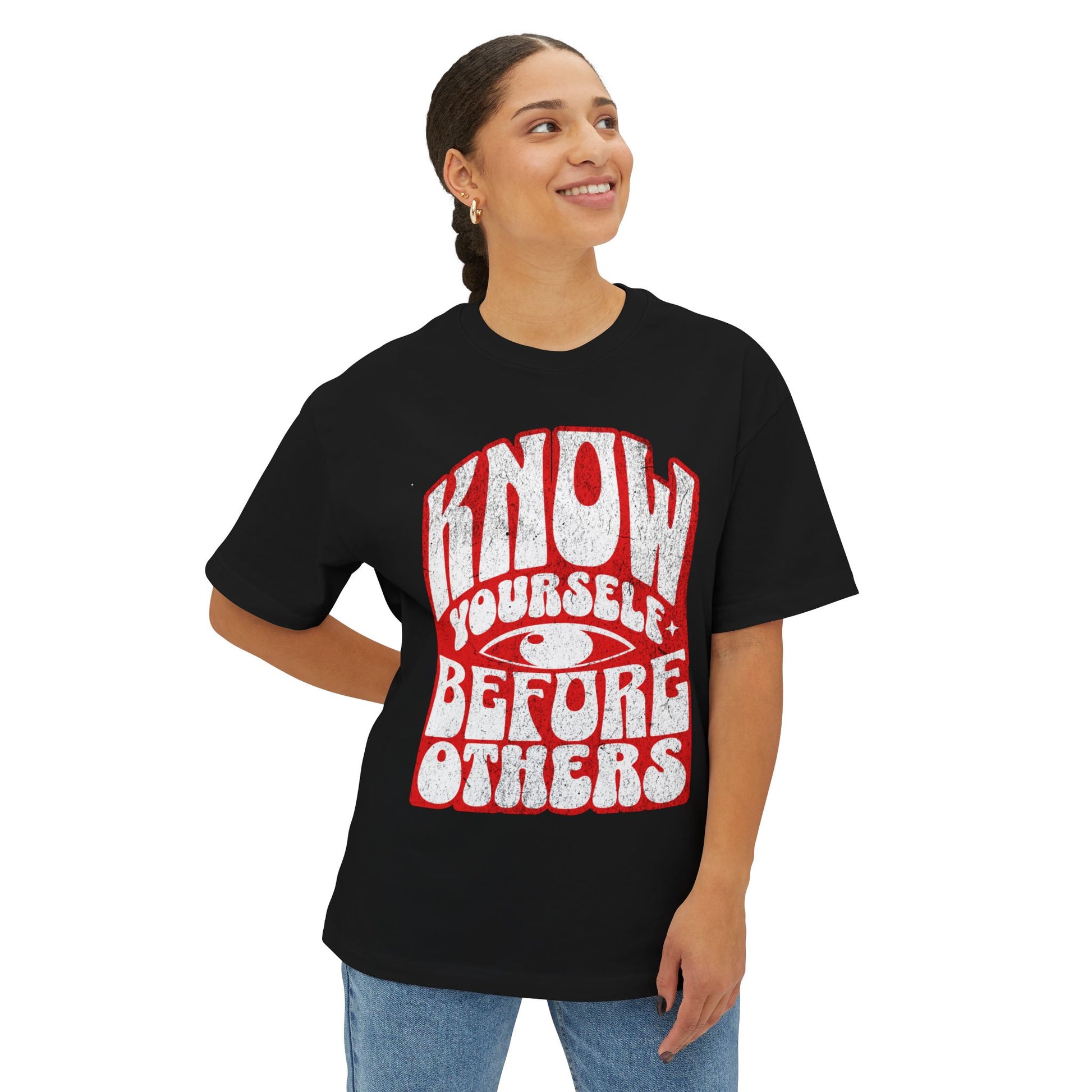 The best guide is a self-guide. “Know Yourself Before Others” reminds you (and everyone around) where wisdom starts. Soft, oversized, thoughtful—it’s fashion that reflects your inner journey.