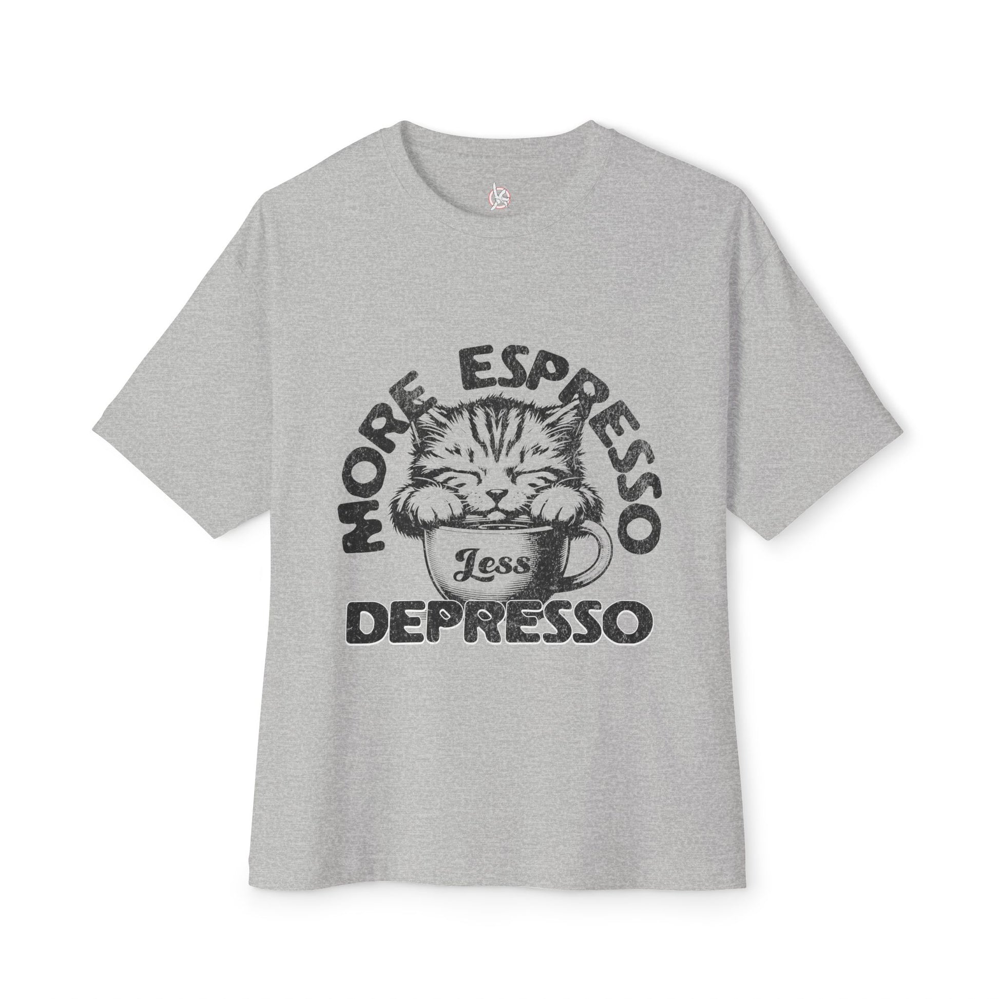 Need a pick-me-up? When mornings (or Mondays) hit hard, this oversized tee is your comfort zone with a shot of sass. Wrapped in soft Airlume cotton, it whispers, “More espresso, less depresso”—because caffeine can’t solve everything, but it sure helps. Cozy fit, bold wit, and guaranteed to spark smiles (and maybe a second coffee).