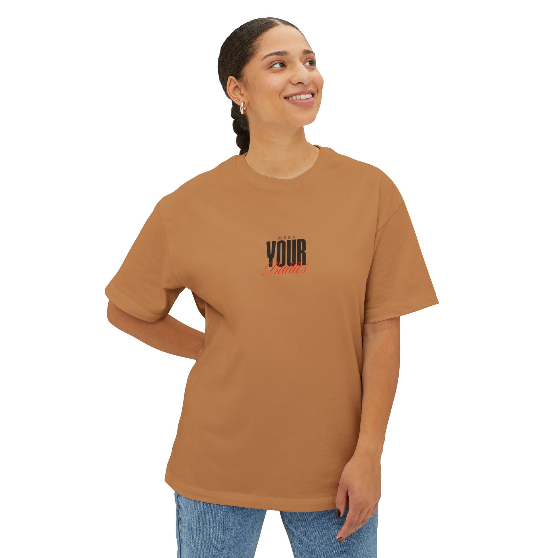 Not every scar is visible. “Wear Your Battles” turns your survival into style—a badge of honor stitched in soft cotton. Oversized, unisex, and unapologetic, it’s designed for those who own their journey and look damn good doing it.
