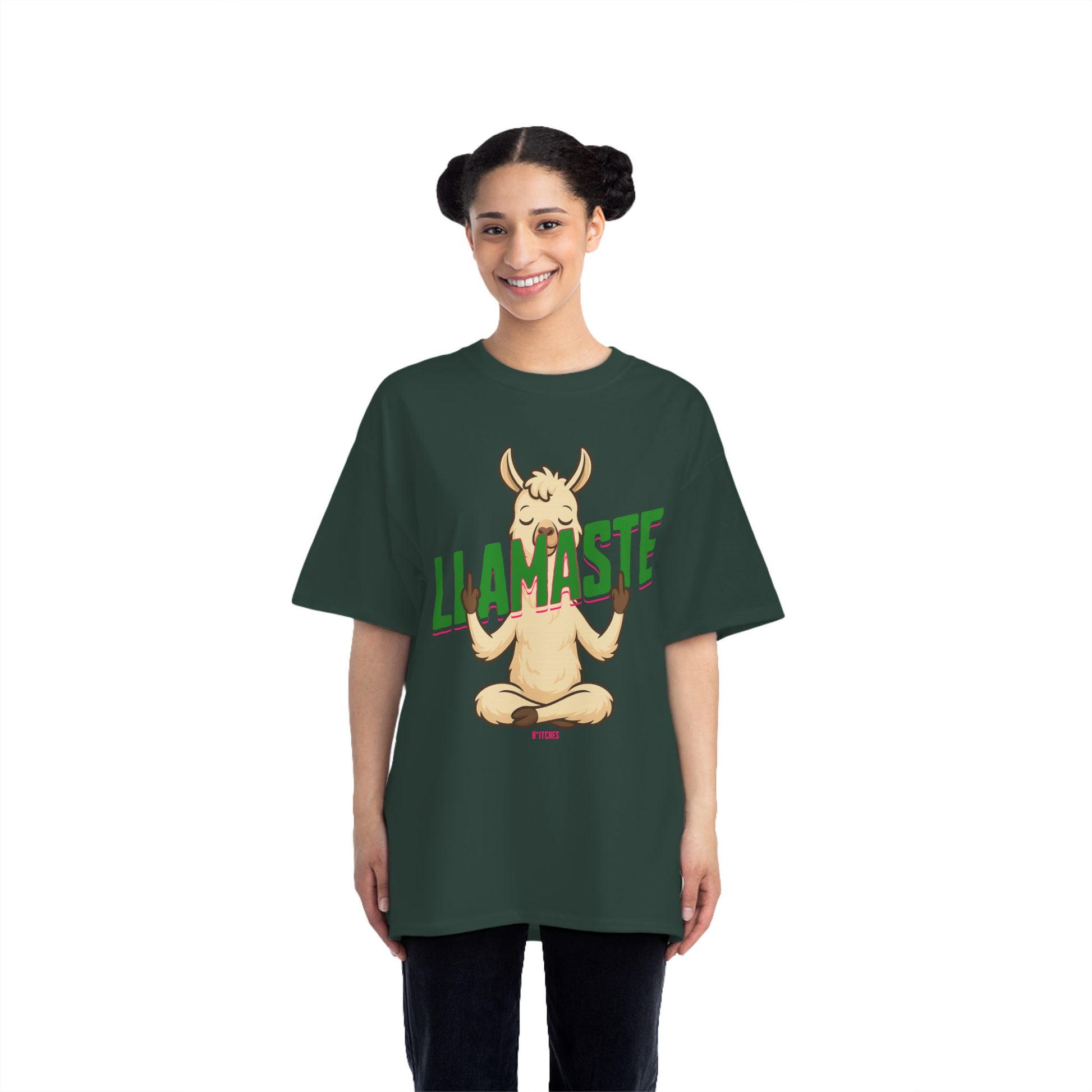 Find your inner peace—with attitude. Our “Llamaste” Oversized T-Shirt blends humor, comfort, and streetwear edge. Featuring a meditating llama throwing cheeky hand signs, this tee is designed for those who live for laughs, bold prints, and ultimate comfort.