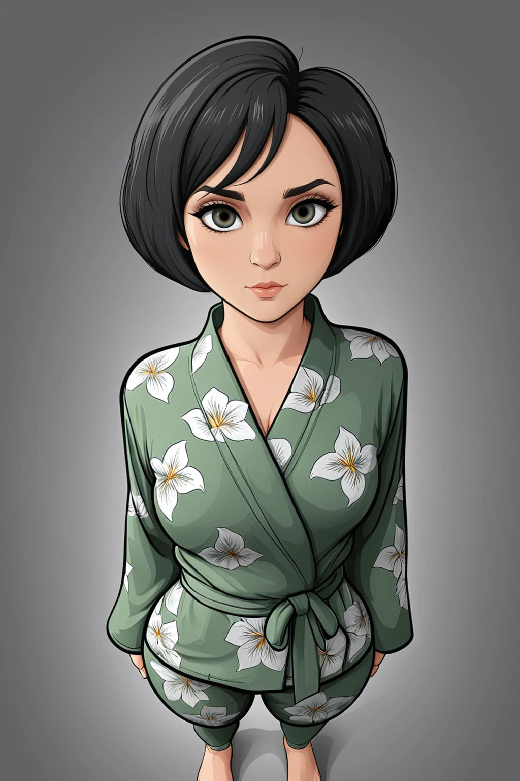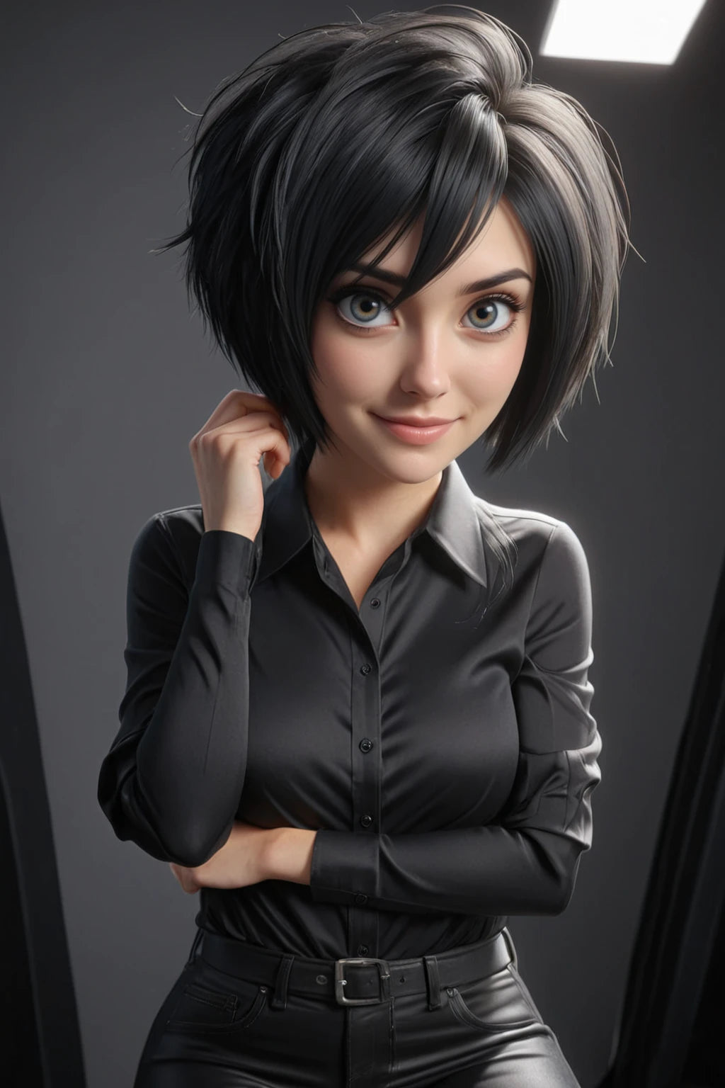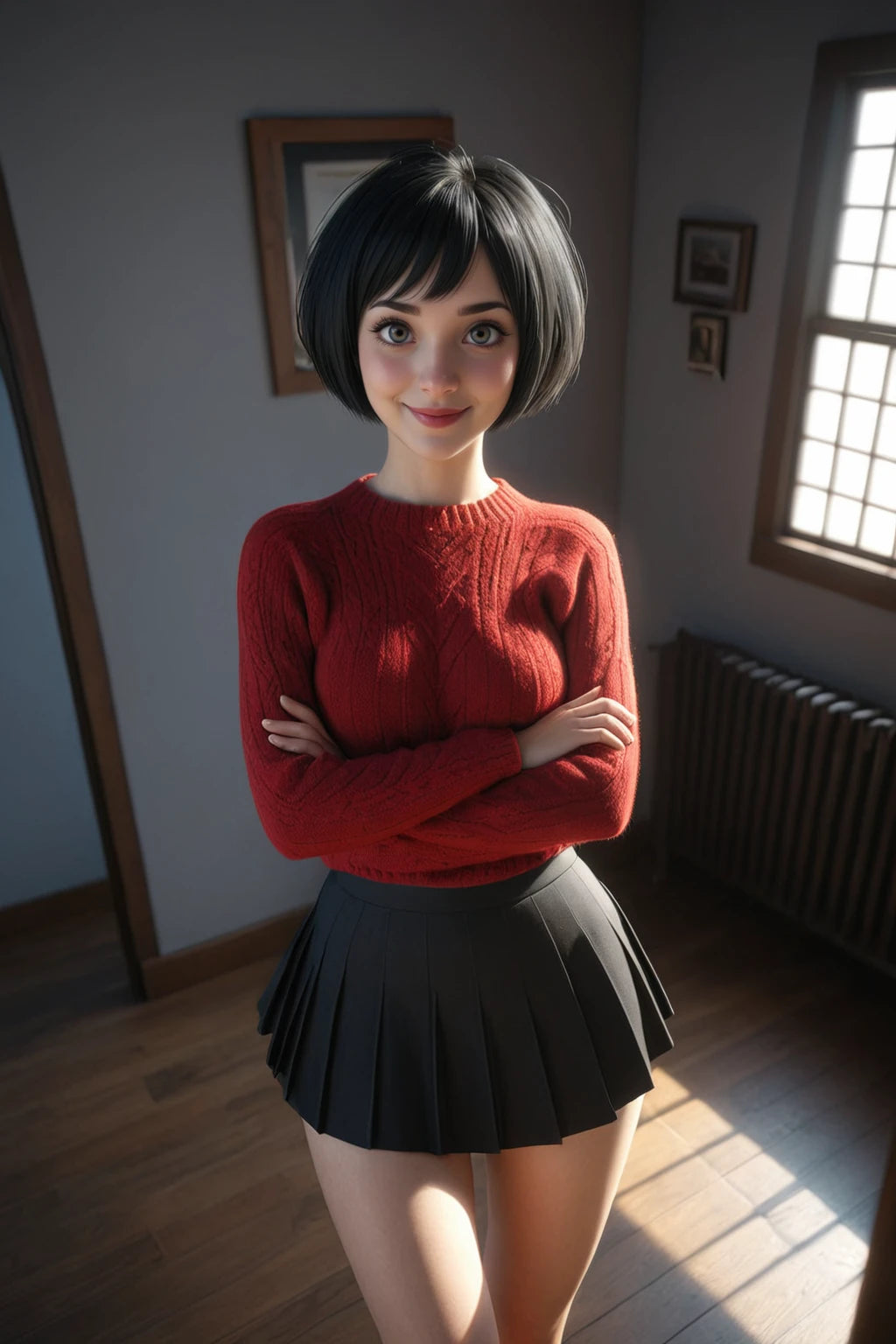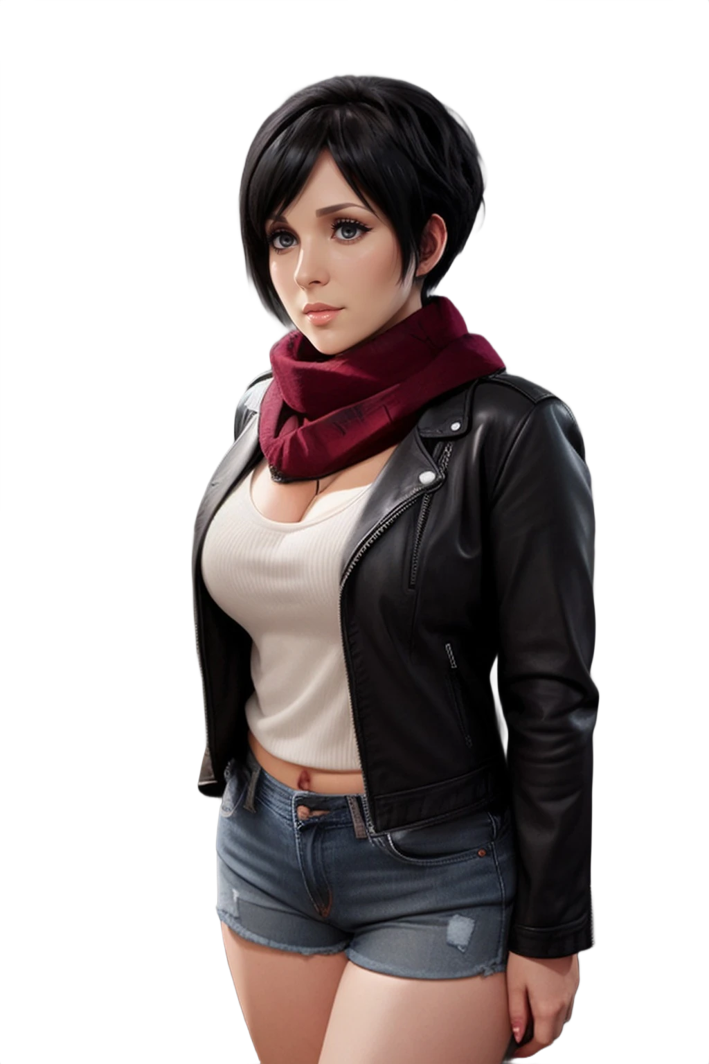 In the soft, grey light of dawn, she stands by a window, her pale grey eyes reflecting a horizon that is no longer burning. Her black hair, once windswept on the battlefield, now falls neatly against her shoulders—sometimes kept long in remembrance, sometimes cut short for the ease of her new life. She wears her signature red scarf, a weathered but cherished relic that serves as her only bridge to the past.