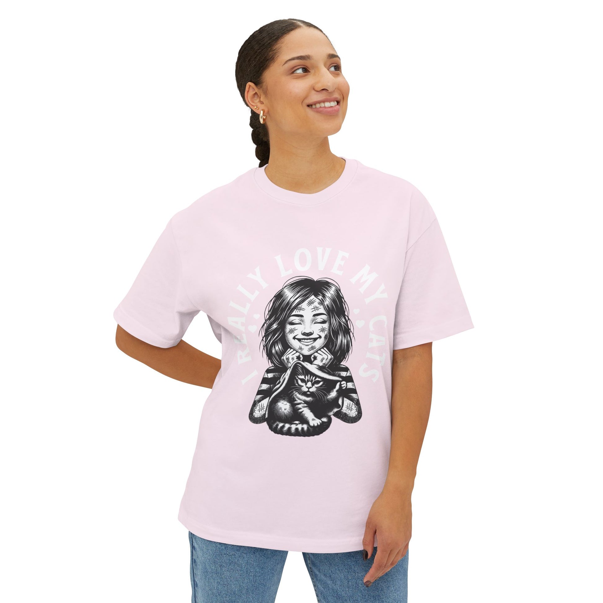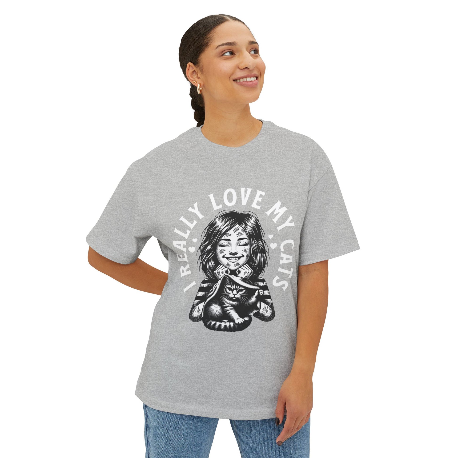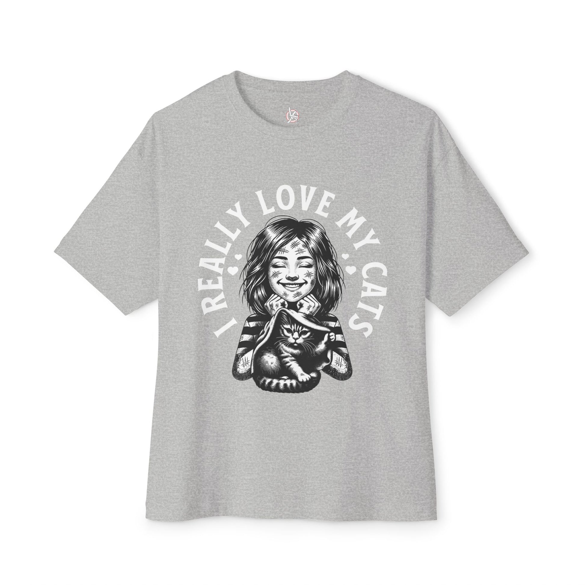 Big love calls for an oversized statement. This oversized “I Really Love My Cats” T-shirt is perfect for anyone whose wardrobe (and heart) revolves around their feline friends. Designed with a relaxed fit, it’s perfect for cozy nights at home with your cat or making a playful fashion statement in the streets.